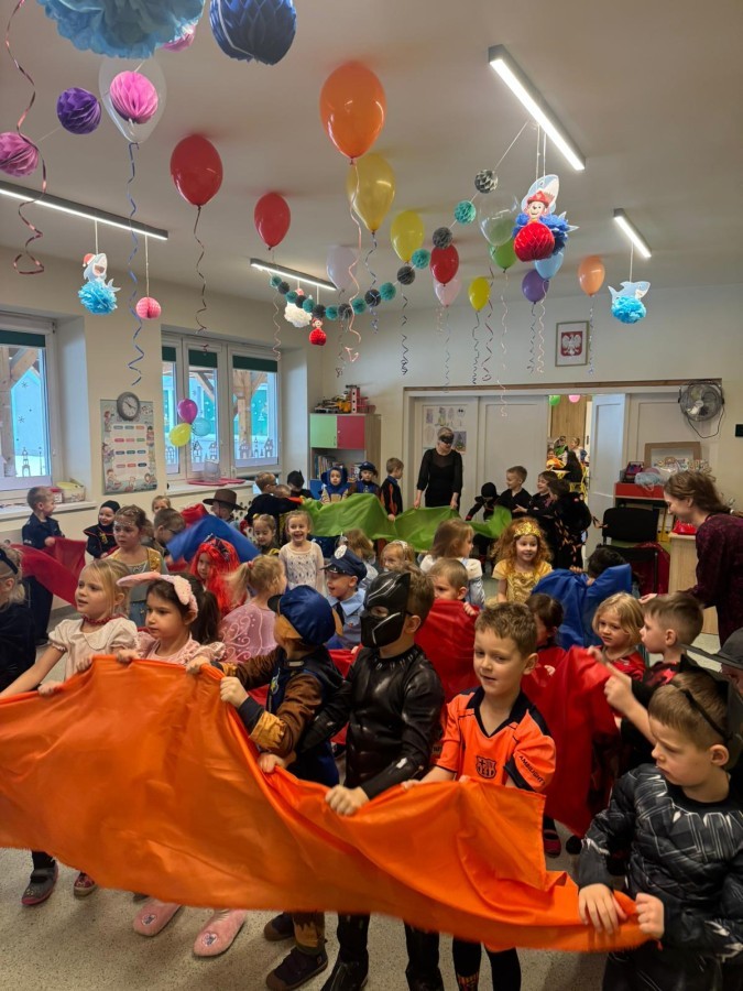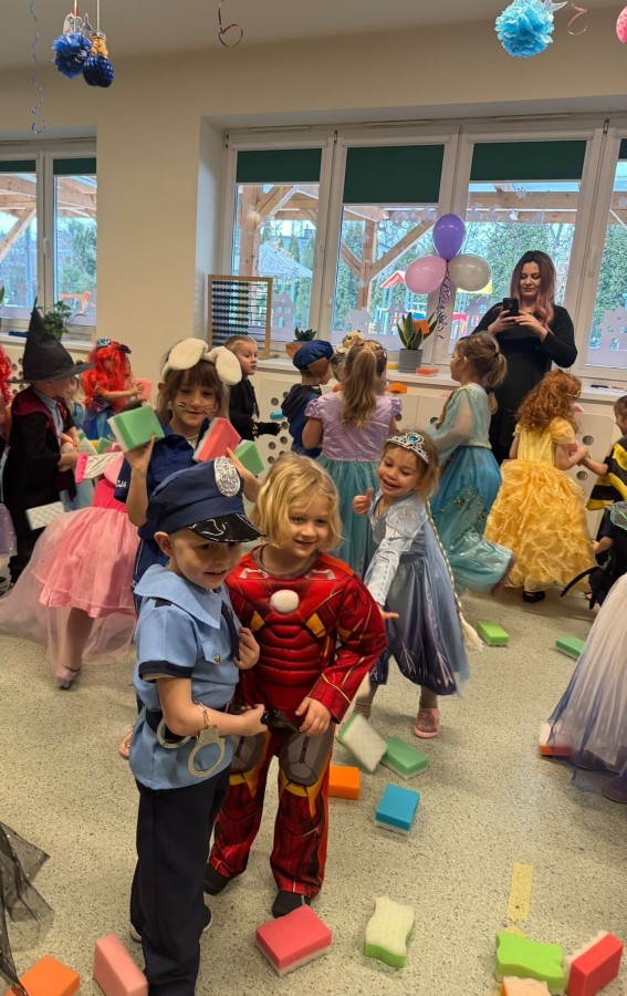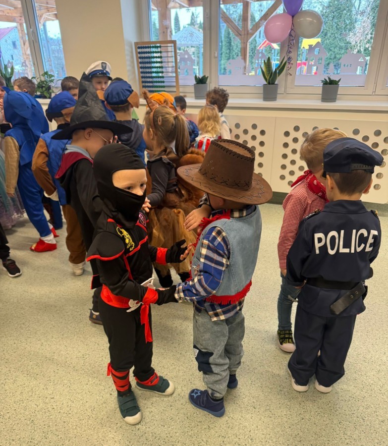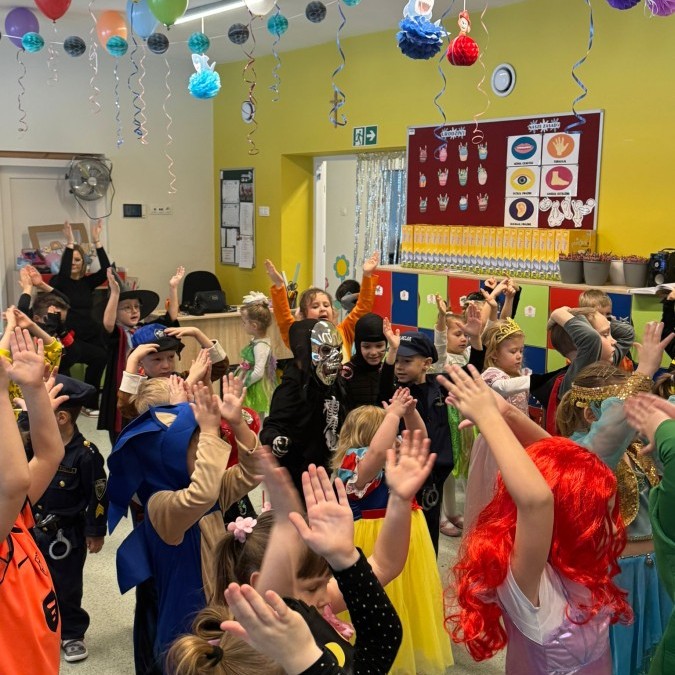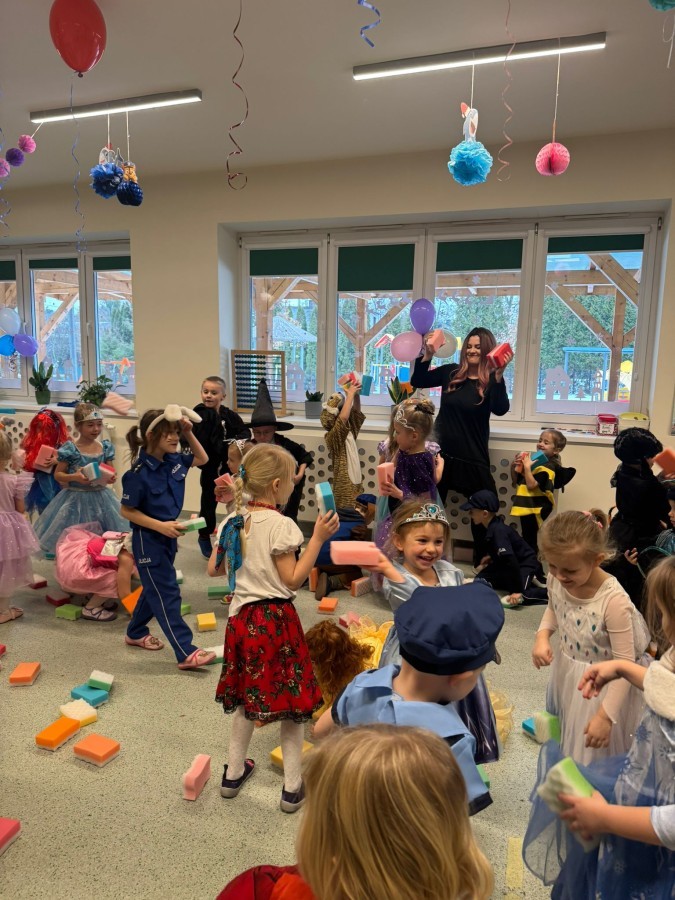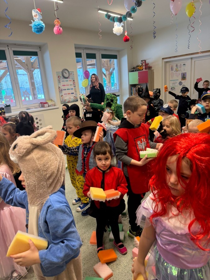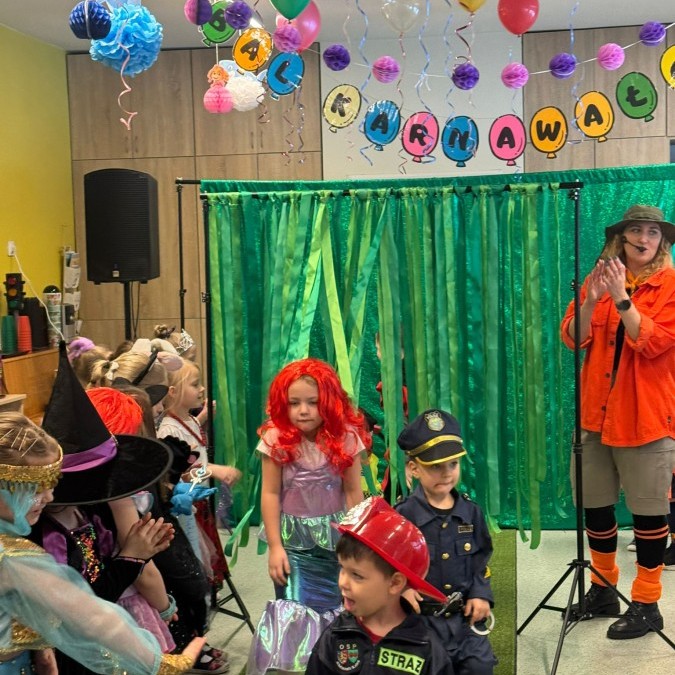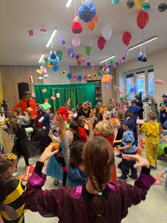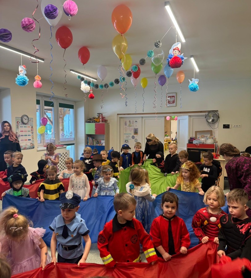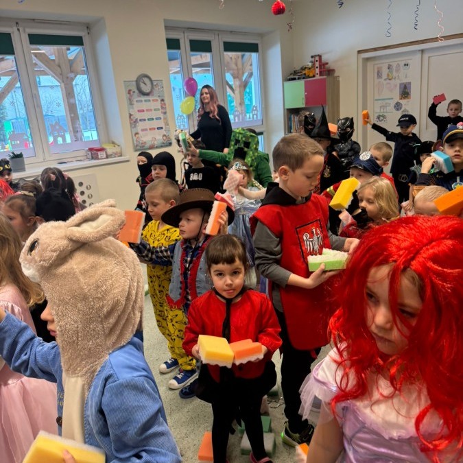 15 stycznia w naszym przedszkolu odbył się długo wyczekiwany bal karnawałowy, który jak co roku przyniósł dzieciom mnóstwo radości, ruchu i kolorowych wrażeń. Już od rana w salach pojawiały się barwne postacie – księżniczki, superbohaterowie, zwierzątka, strażacy, wróżki i wiele innych kreatywnych przebrań przygotowanych z ogromną starannością.