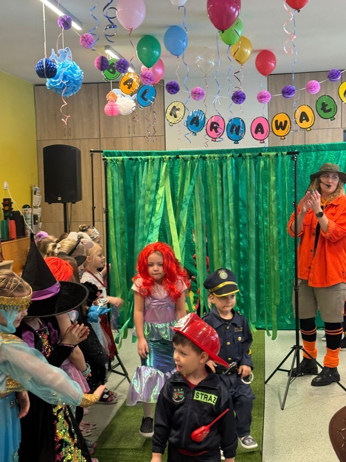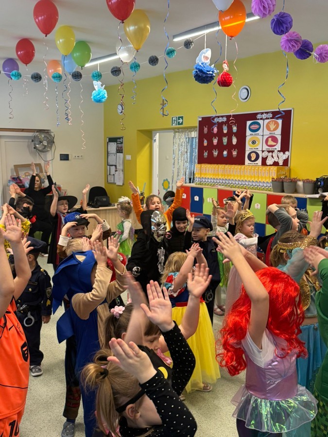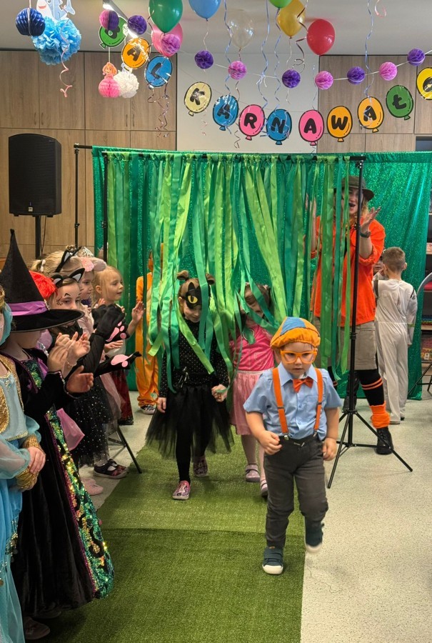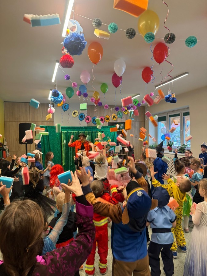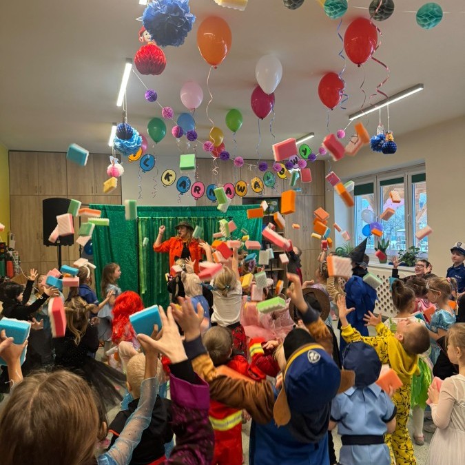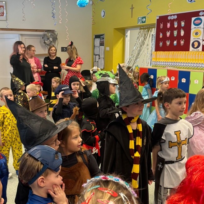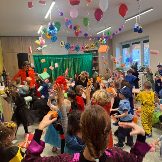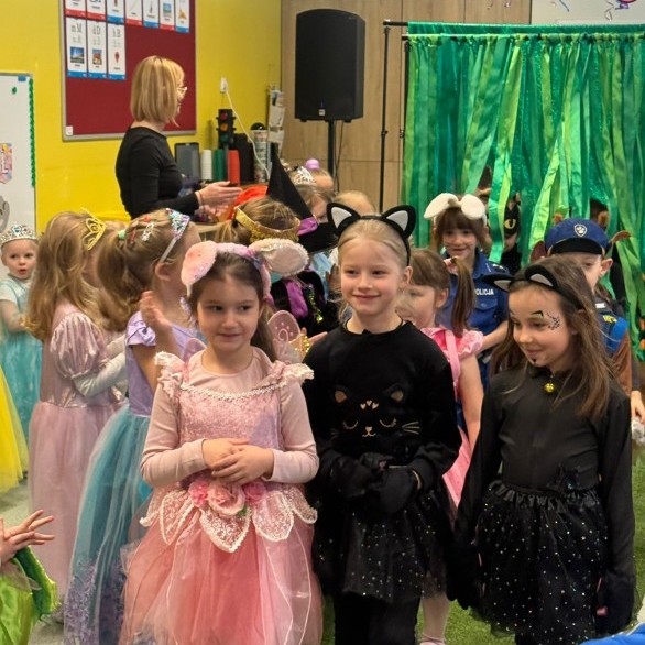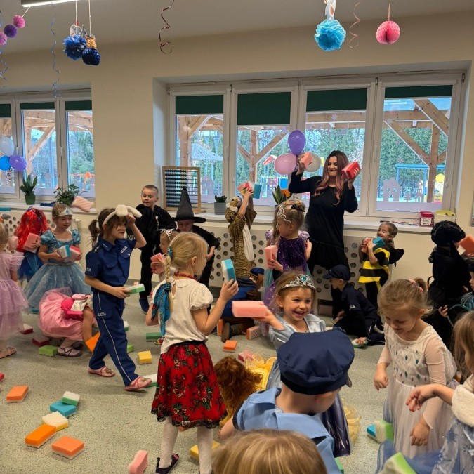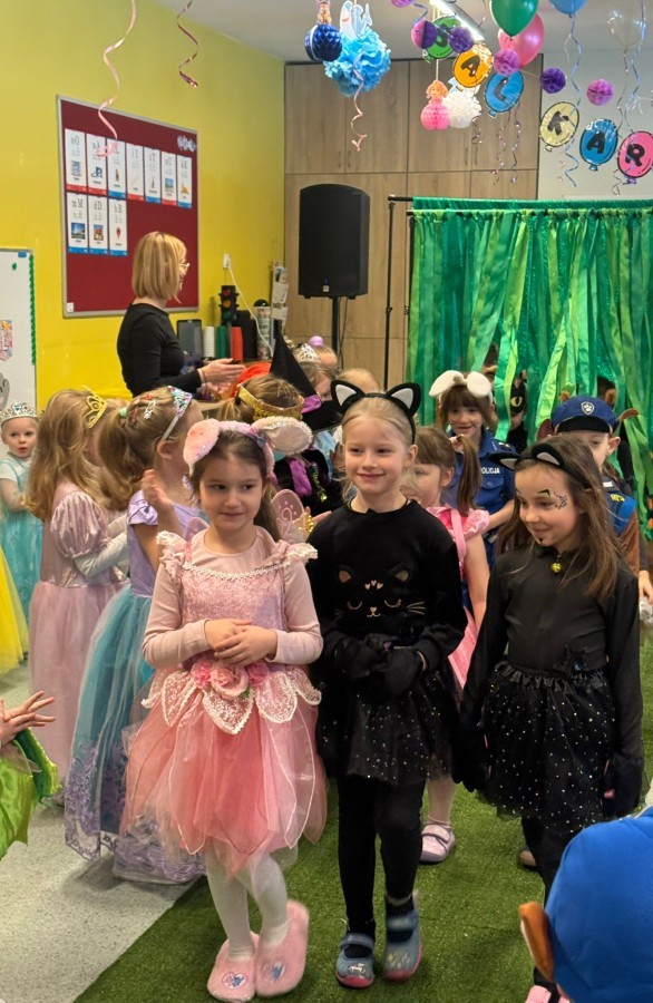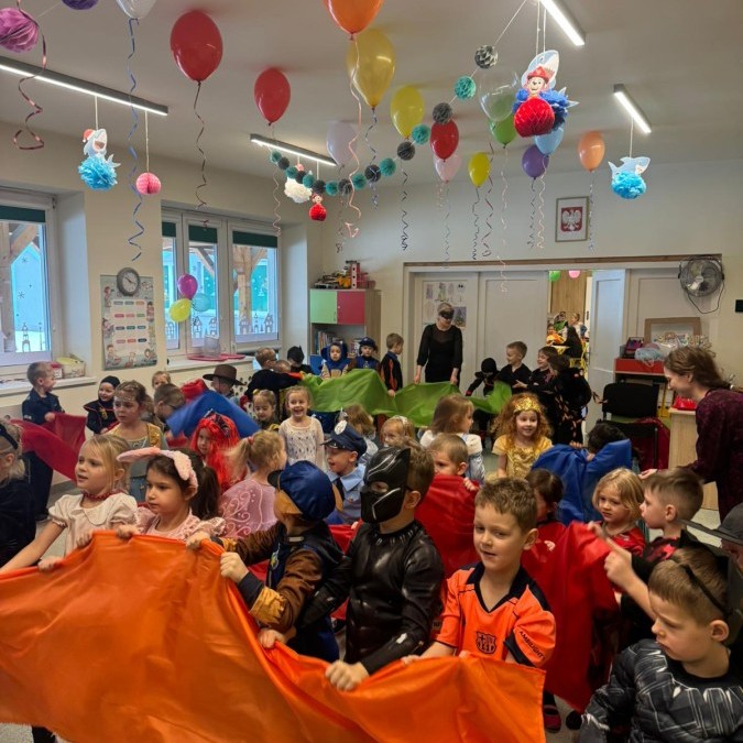 15 stycznia w naszym przedszkolu odbył się długo wyczekiwany bal karnawałowy, który jak co roku przyniósł dzieciom mnóstwo radości, ruchu i kolorowych wrażeń. Już od rana w salach pojawiały się barwne postacie – księżniczki, superbohaterowie, zwierzątka, strażacy, wróżki i wiele innych kreatywnych przebrań przygotowanych z ogromną starannością.