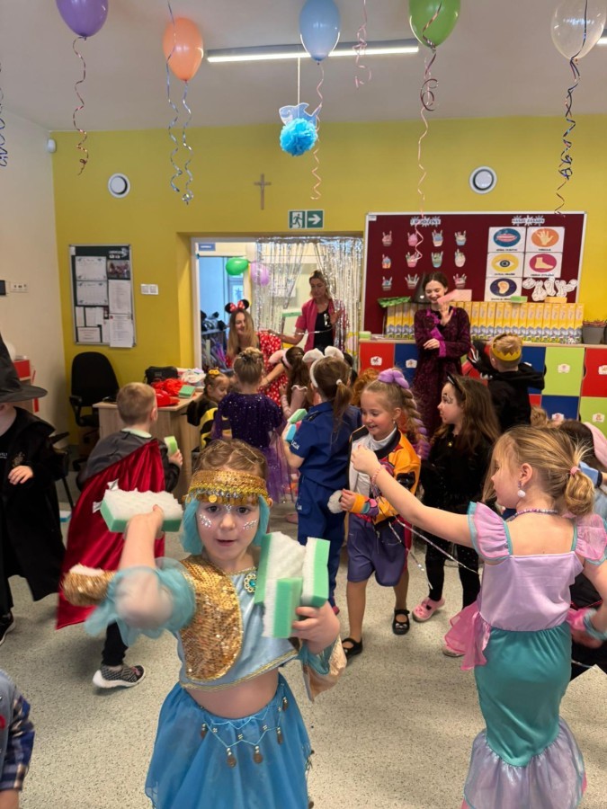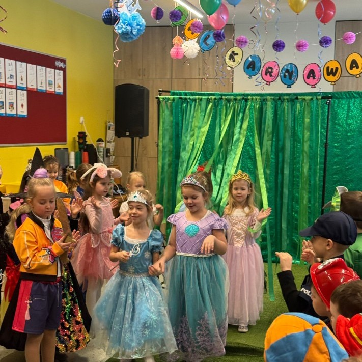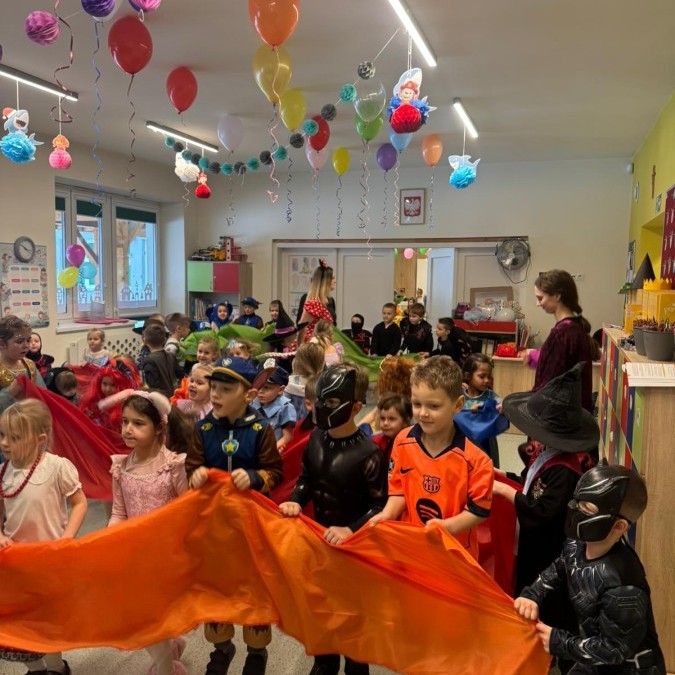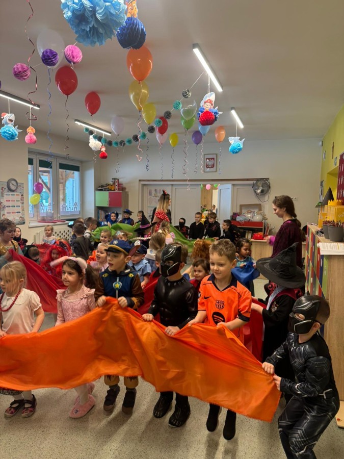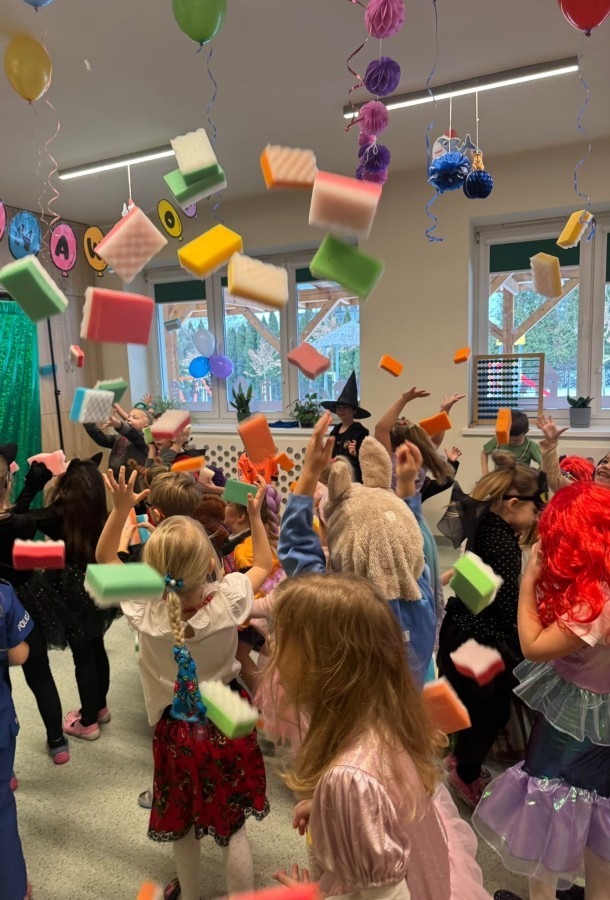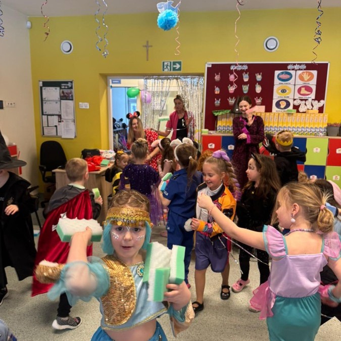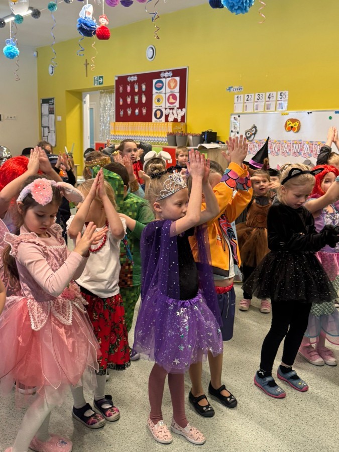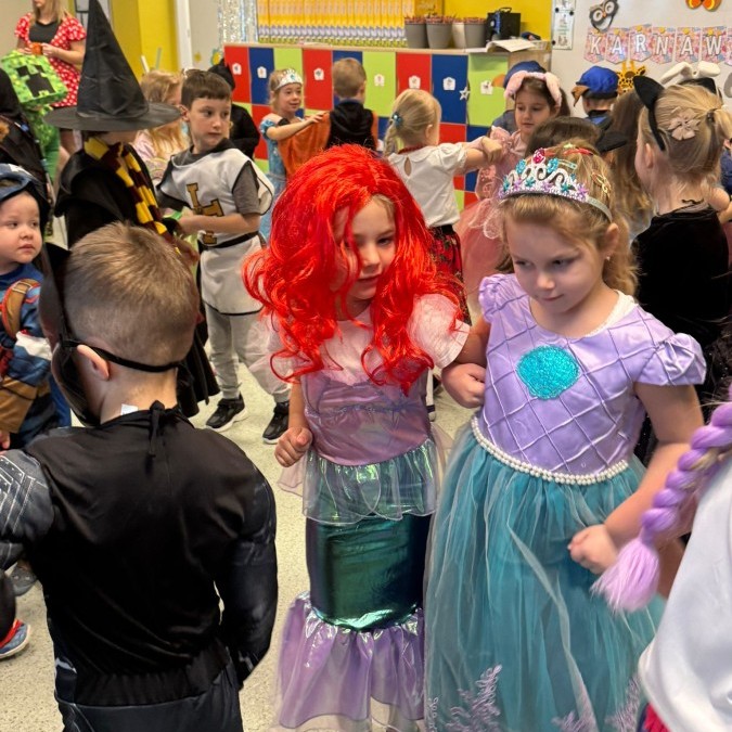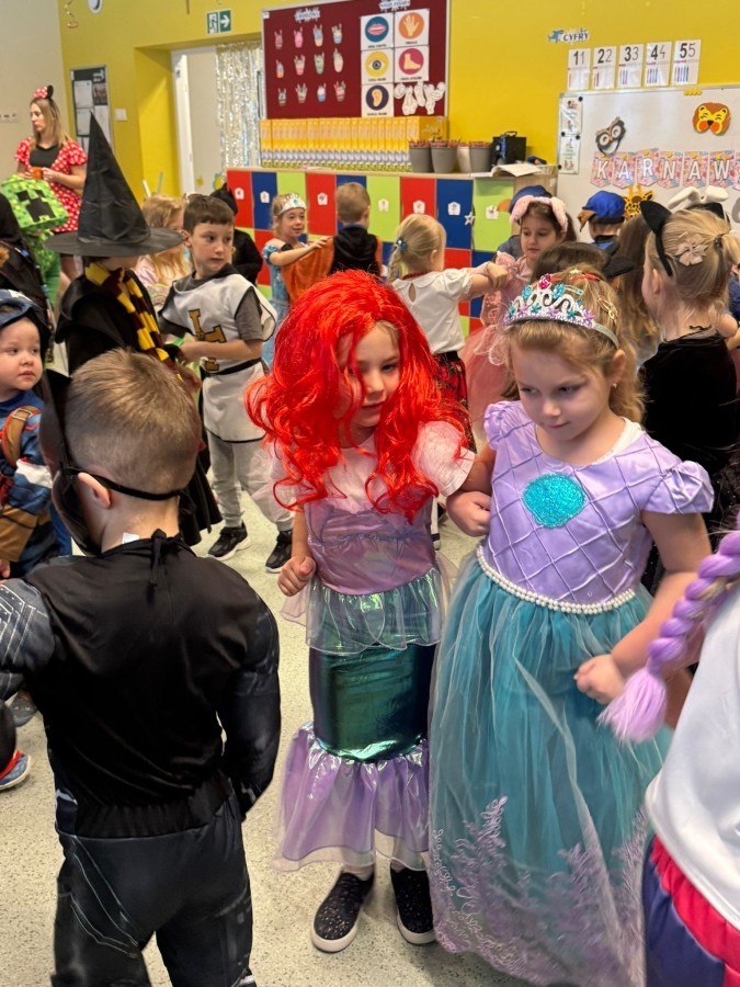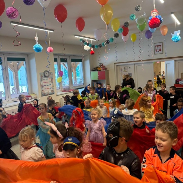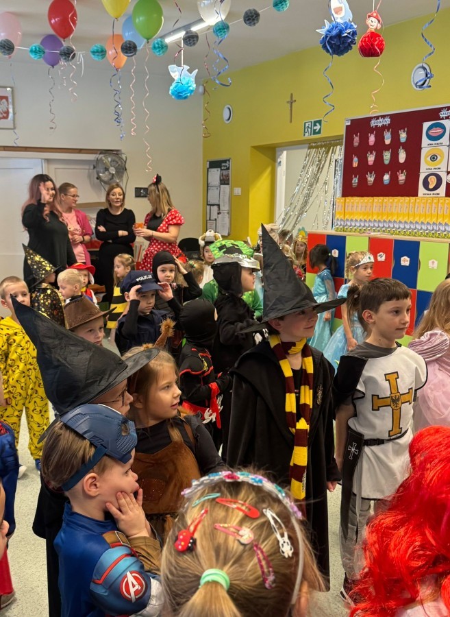 15 stycznia w naszym przedszkolu odbył się długo wyczekiwany bal karnawałowy, który jak co roku przyniósł dzieciom mnóstwo radości, ruchu i kolorowych wrażeń. Już od rana w salach pojawiały się barwne postacie – księżniczki, superbohaterowie, zwierzątka, strażacy, wróżki i wiele innych kreatywnych przebrań przygotowanych z ogromną starannością.