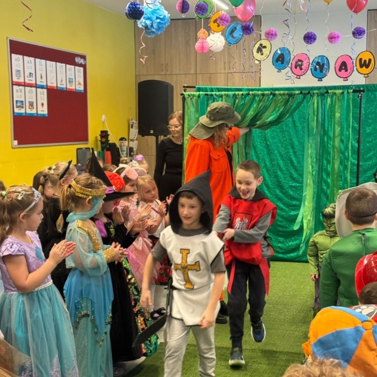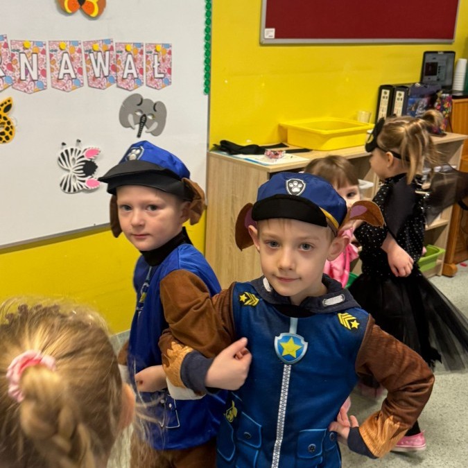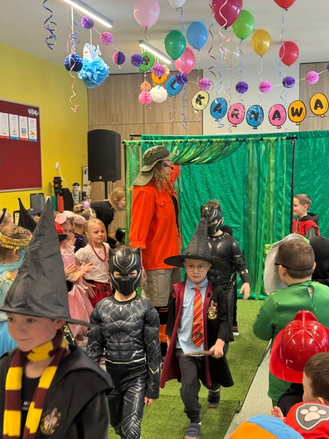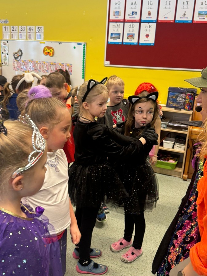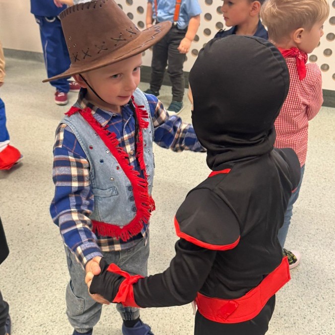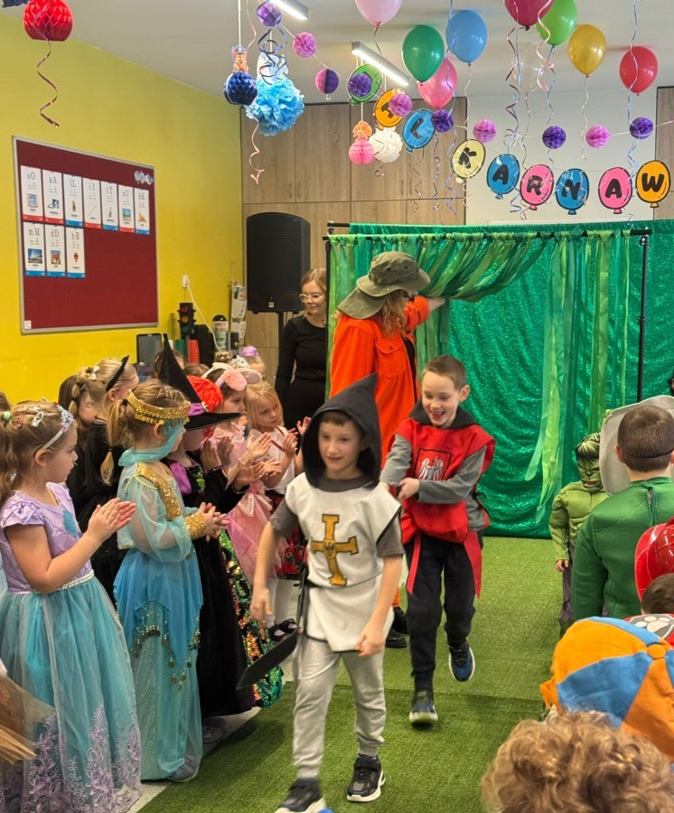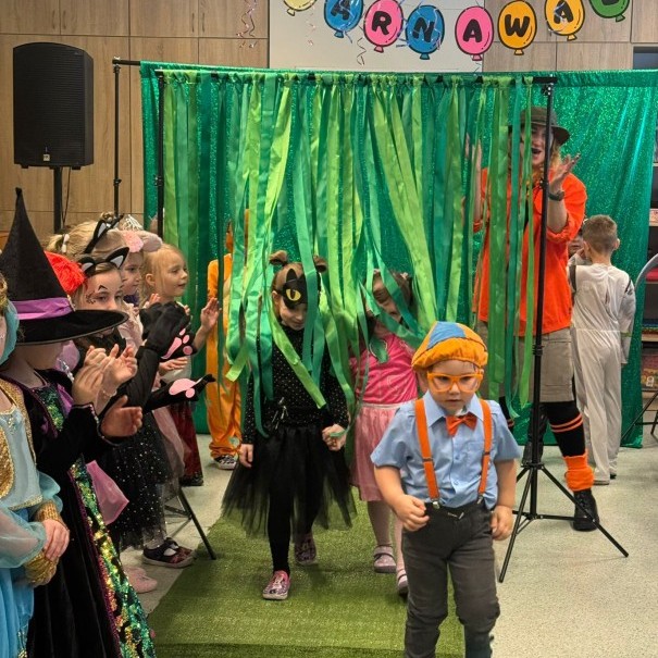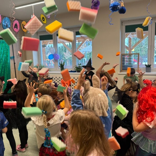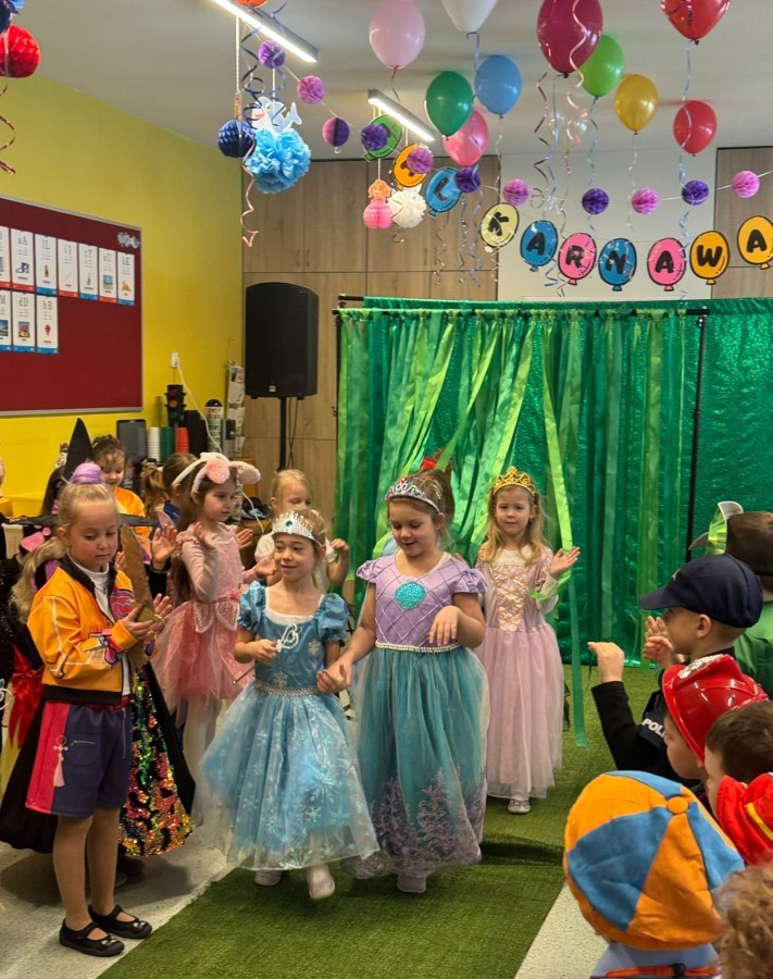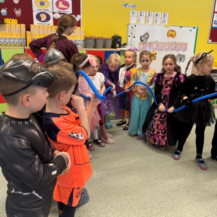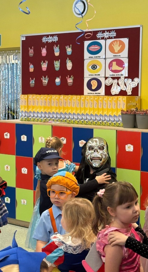 15 stycznia w naszym przedszkolu odbył się długo wyczekiwany bal karnawałowy, który jak co roku przyniósł dzieciom mnóstwo radości, ruchu i kolorowych wrażeń. Już od rana w salach pojawiały się barwne postacie – księżniczki, superbohaterowie, zwierzątka, strażacy, wróżki i wiele innych kreatywnych przebrań przygotowanych z ogromną starannością.