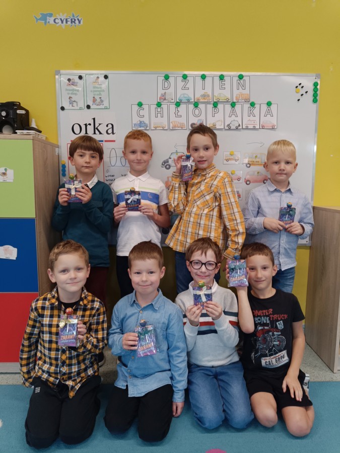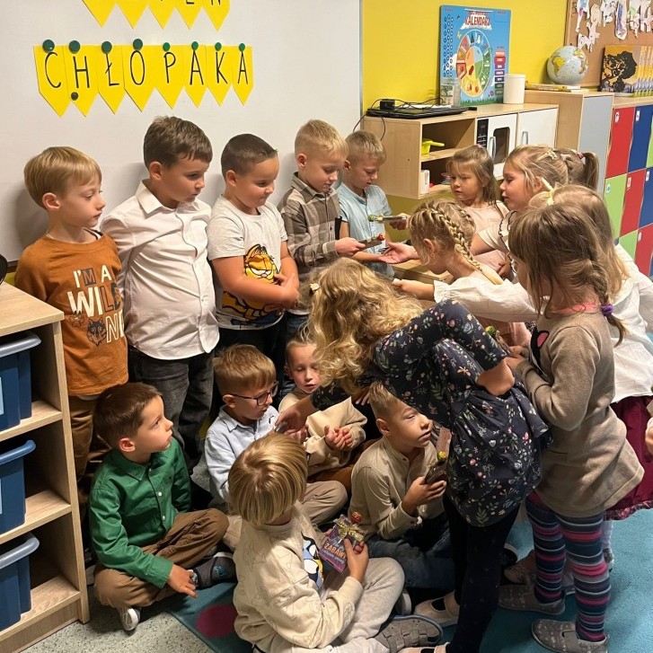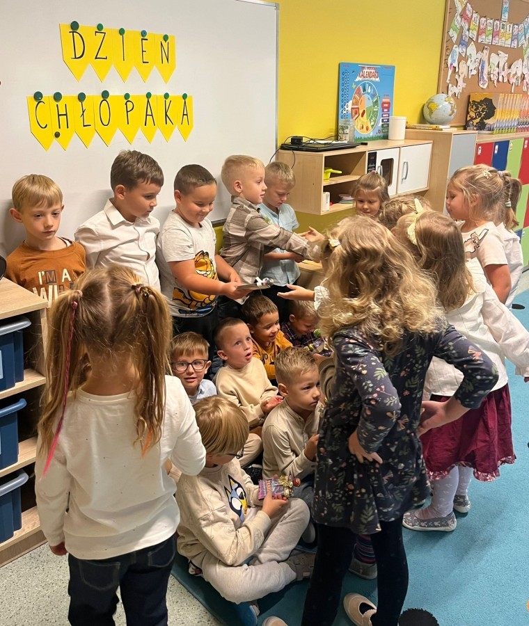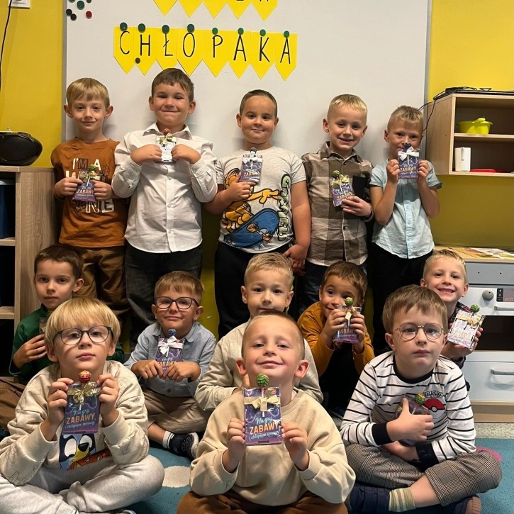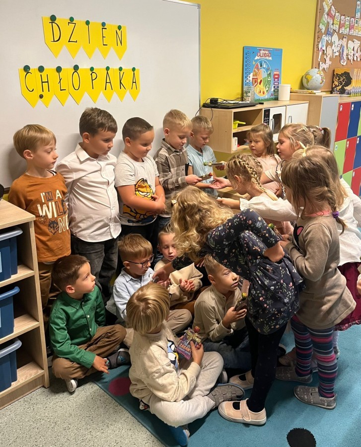 We wtorek, 30 września, nasze przedszkole zamieniło się w prawdziwą krainę niespodzianek - wszystko po to, by uczcić wyjątkowy Dzień Chłopaka! Nasi mali bohaterowie zostali obdarowani uśmiechem, życzeniami i drobnymi upominkami, które wywołały wiele radości. Co najważniejsze - to właśnie dziewczynki, z ogromnym zaangażowaniem i serdecznością, wręczyły kolegom przygotowane niespodzianki, sprawiając im tym mnóstwo przyjemności. Nie zabrakło wspólnych zabaw, tańców i kreatywnych aktywności, które pozwoliły dzieciom poczuć się naprawdę wyjątkowo.