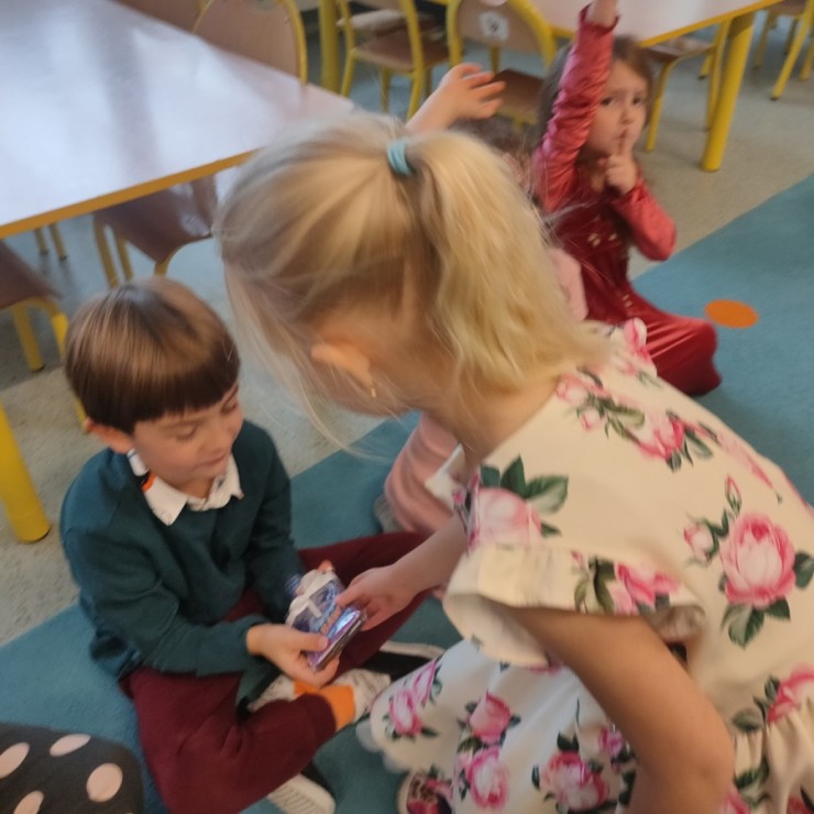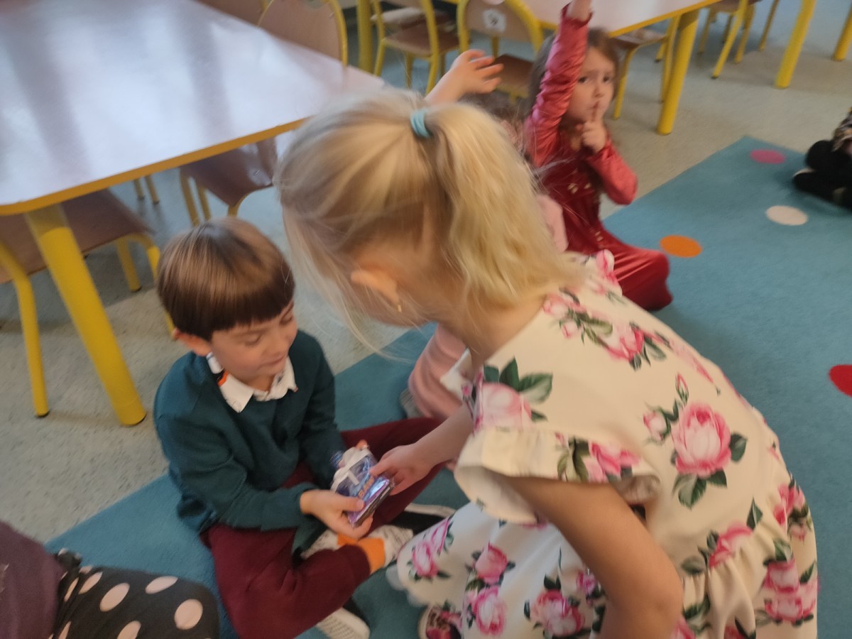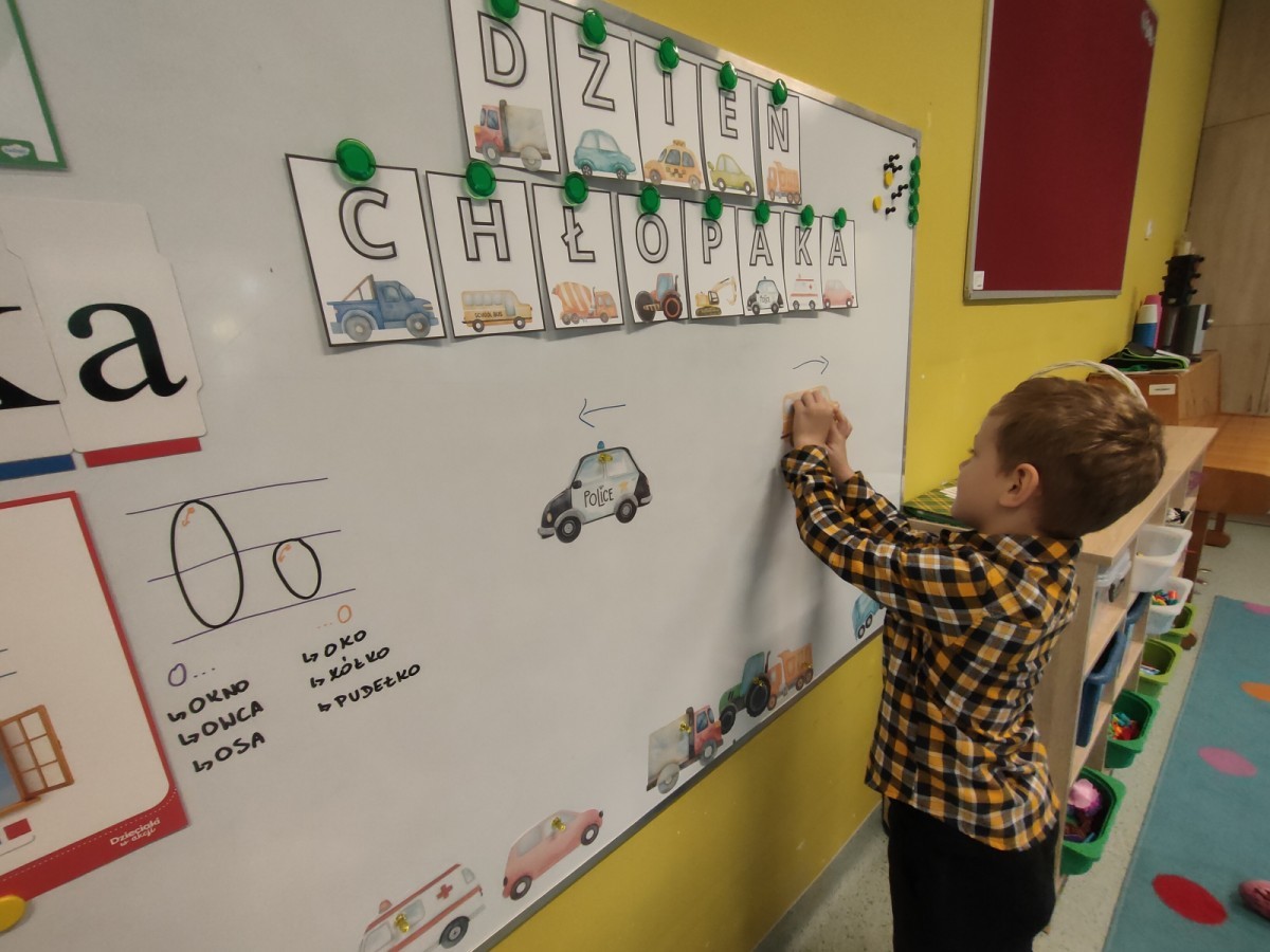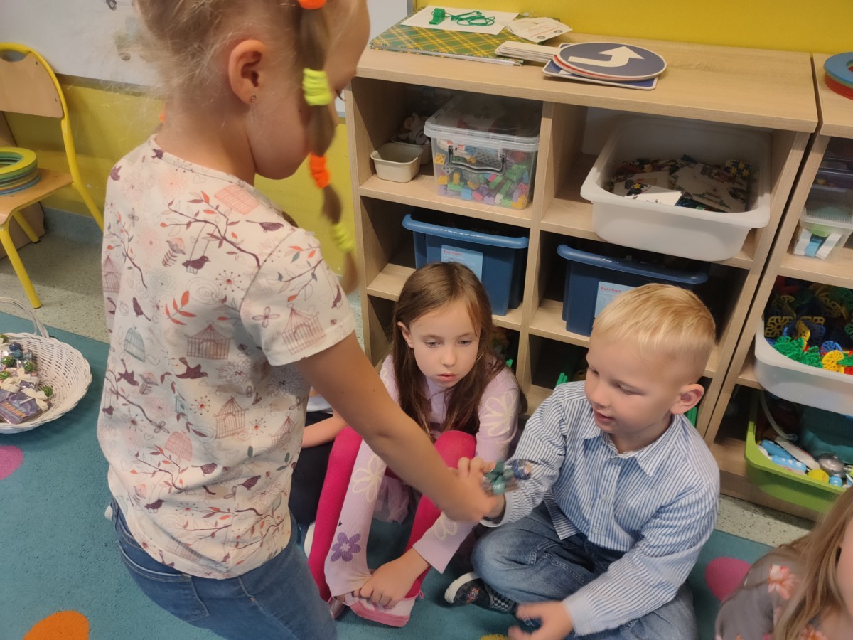 We wtorek, 30 września, nasze przedszkole zamieniło się w prawdziwą krainę niespodzianek - wszystko po to, by uczcić wyjątkowy Dzień Chłopaka! Nasi mali bohaterowie zostali obdarowani uśmiechem, życzeniami i drobnymi upominkami, które wywołały wiele radości. Co najważniejsze - to właśnie dziewczynki, z ogromnym zaangażowaniem i serdecznością, wręczyły kolegom przygotowane niespodzianki, sprawiając im tym mnóstwo przyjemności. Nie zabrakło wspólnych zabaw, tańców i kreatywnych aktywności, które pozwoliły dzieciom poczuć się naprawdę wyjątkowo.