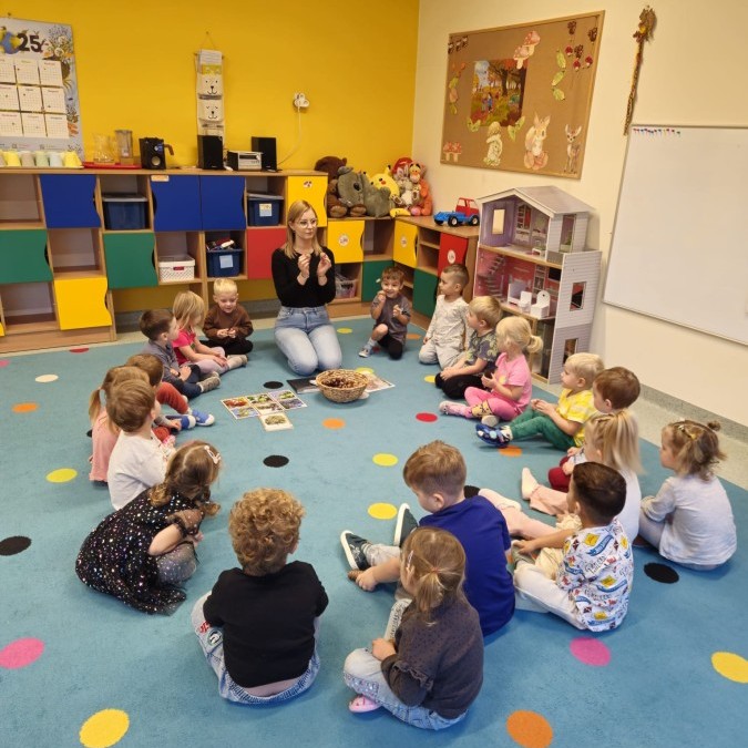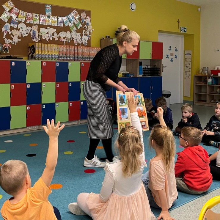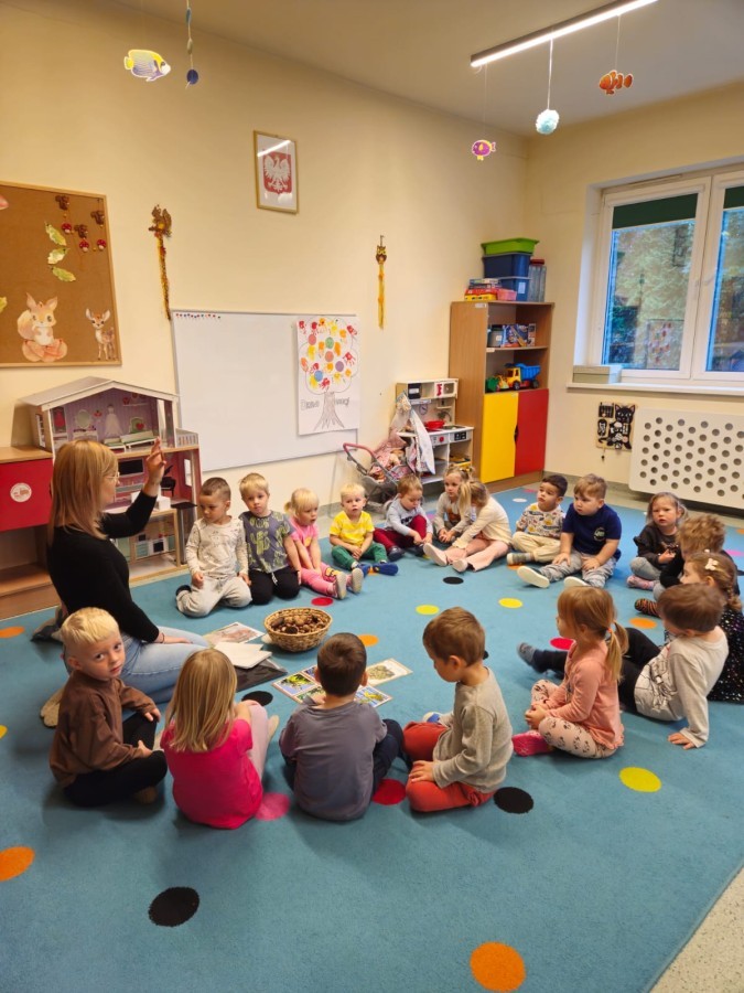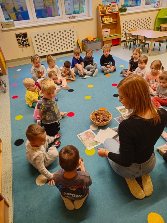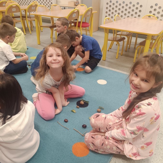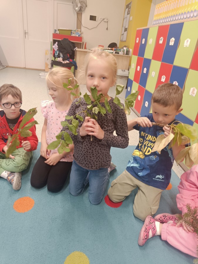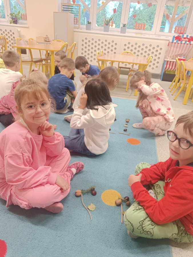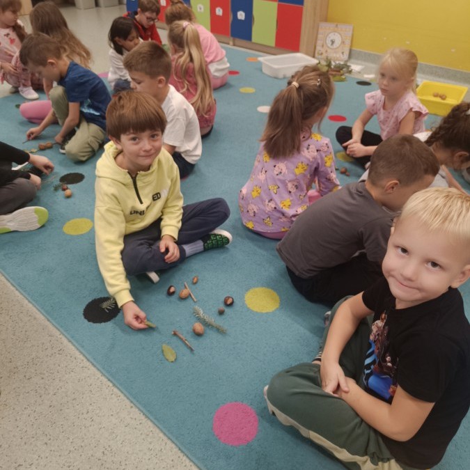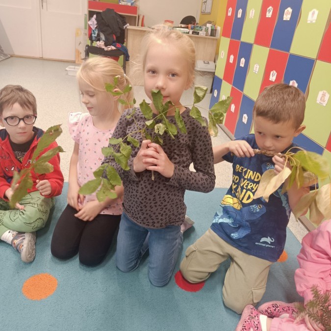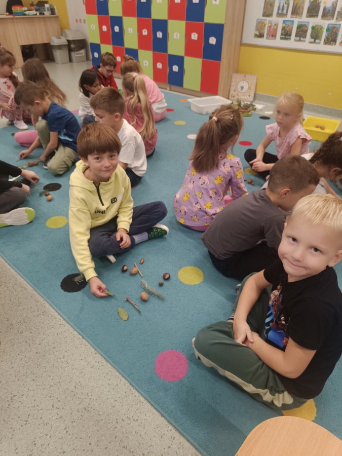 Dzieci uczestniczy艂y w inspiruj膮cych zaj臋ciach przyrodniczych, poznaj膮c gatunki drzew, ich budow臋 oraz znaczenie dla ludzi i zwierz膮t. Z zaanga偶owaniem rozwi膮zywa艂y zagadki, s艂ucha艂y opowie艣ci o le艣nych mieszka艅cach i dzieli艂y si臋 w艂asnymi obserwacjami z jesiennych spacerów.