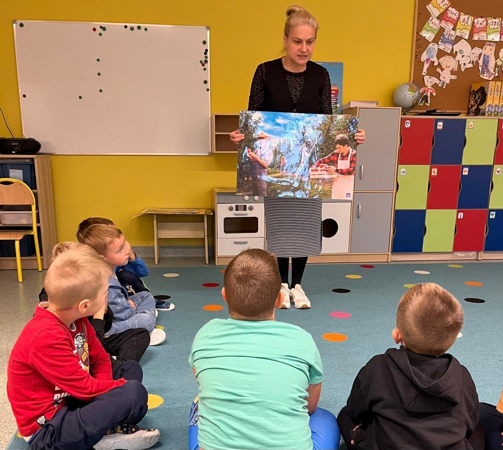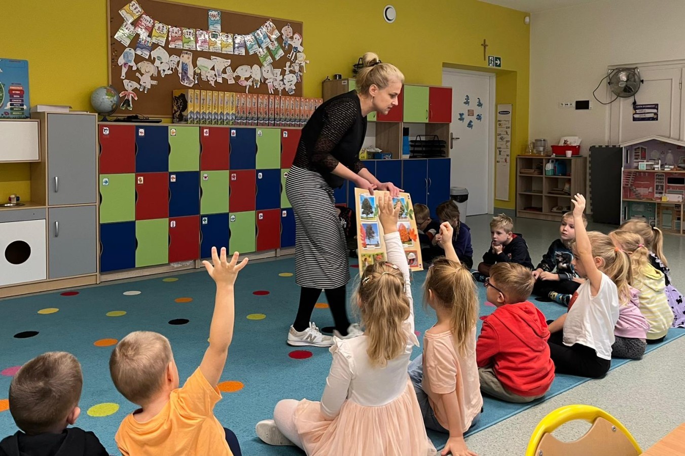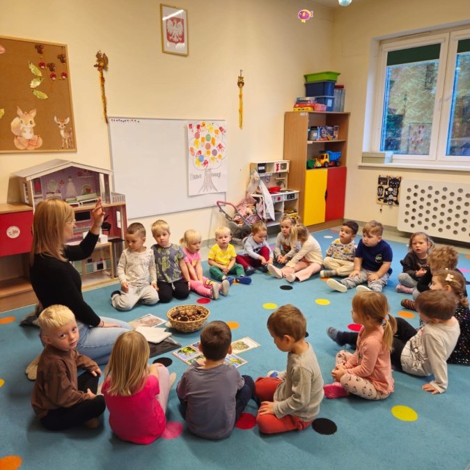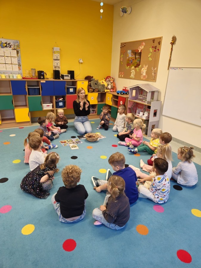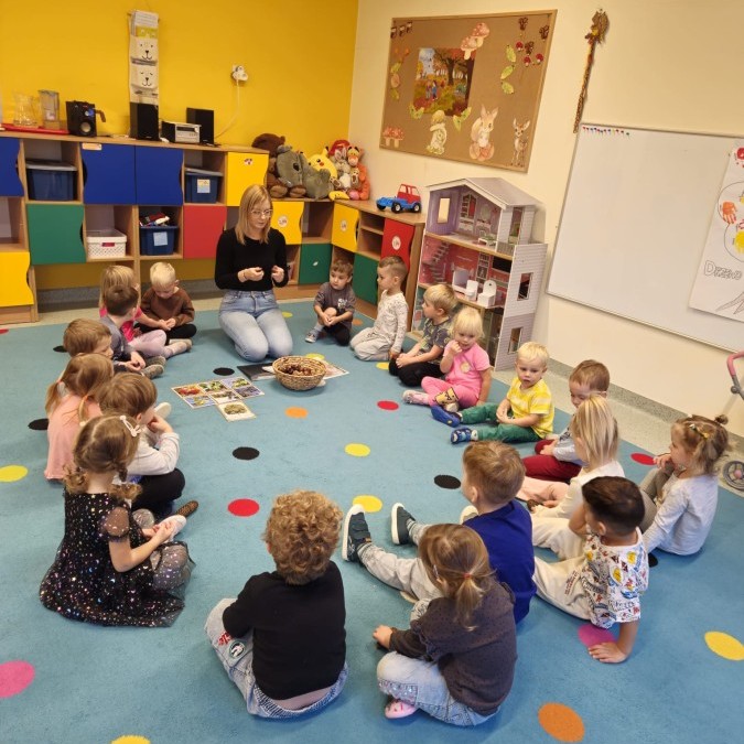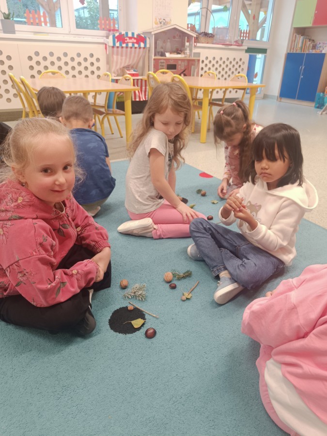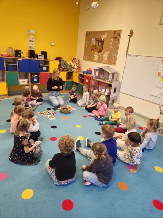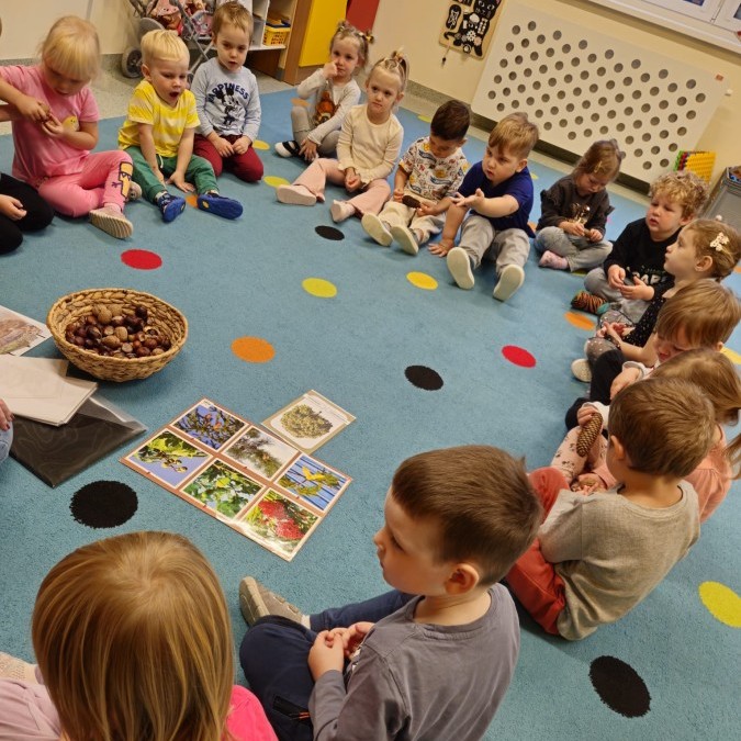 Dzieci uczestniczy艂y w inspiruj膮cych zaj臋ciach przyrodniczych, poznaj膮c gatunki drzew, ich budow臋 oraz znaczenie dla ludzi i zwierz膮t. Z zaanga偶owaniem rozwi膮zywa艂y zagadki, s艂ucha艂y opowie艣ci o le艣nych mieszka艅cach i dzieli艂y si臋 w艂asnymi obserwacjami z jesiennych spacerów.
