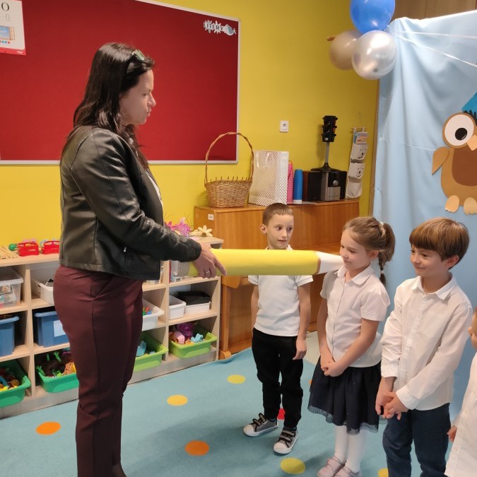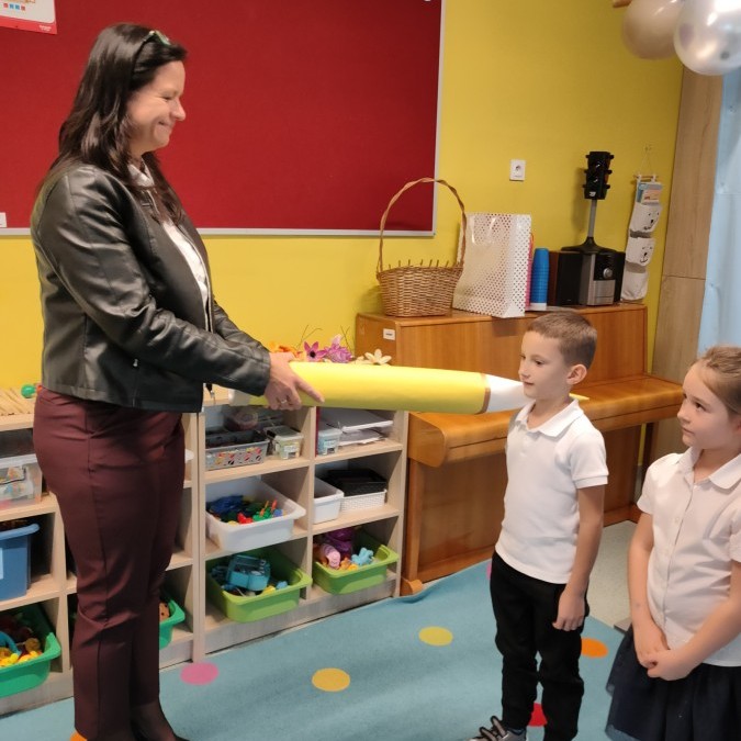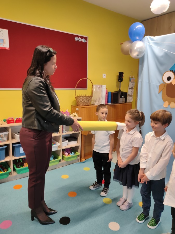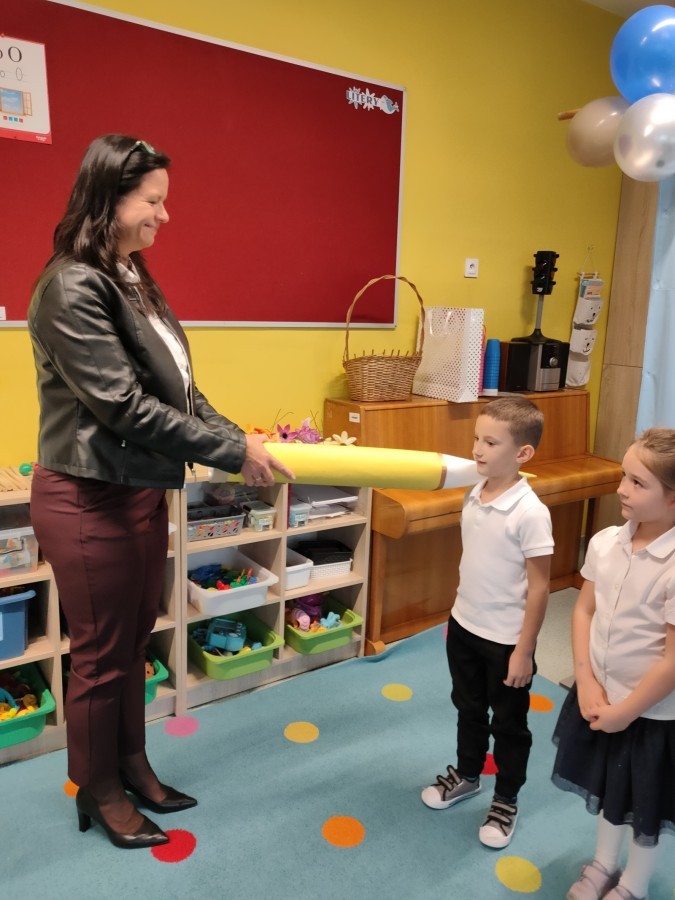 馃帗 Szczególnym momentem uroczysto艣ci by艂o pasowanie na przedszkolaka - starsze dzieci oficjalnie powita艂y nowo przyj臋tych kolegów i kole偶anki w naszej przedszkolnej spo艂eczno艣ci. To wa偶ny krok w ich edukacyjnej przygodzie, pe艂en emocji i rado艣ci.