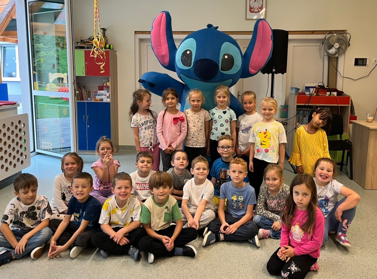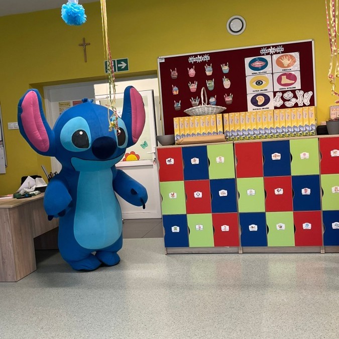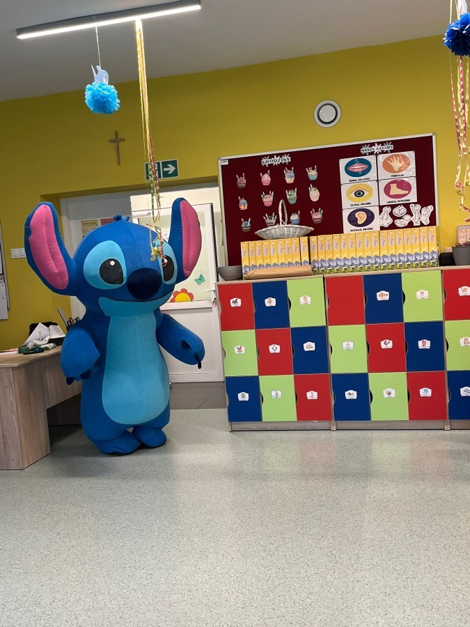 Na zakończenie wydarzenia czekała na dzieci niespodzianka, która wywołała prawdziwy zachwyt - pojawił się Stitch! Niebieski bohater z bajki wkroczył na salę, wzbudzając okrzyki radości i zdziwienia.