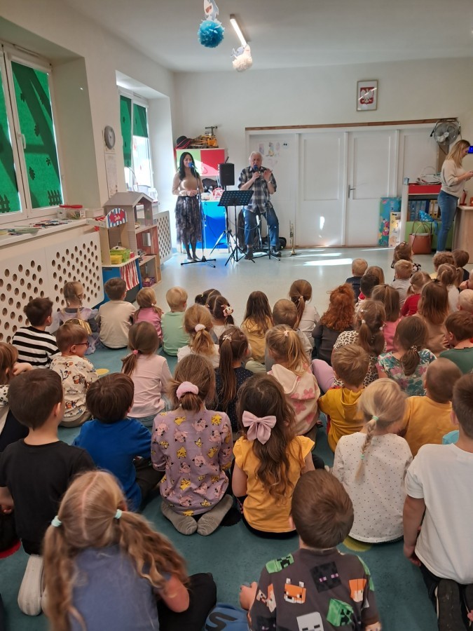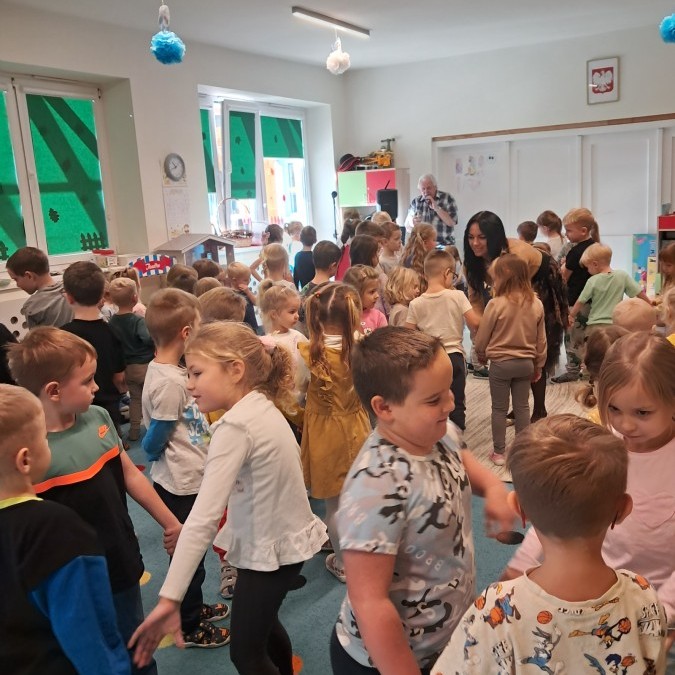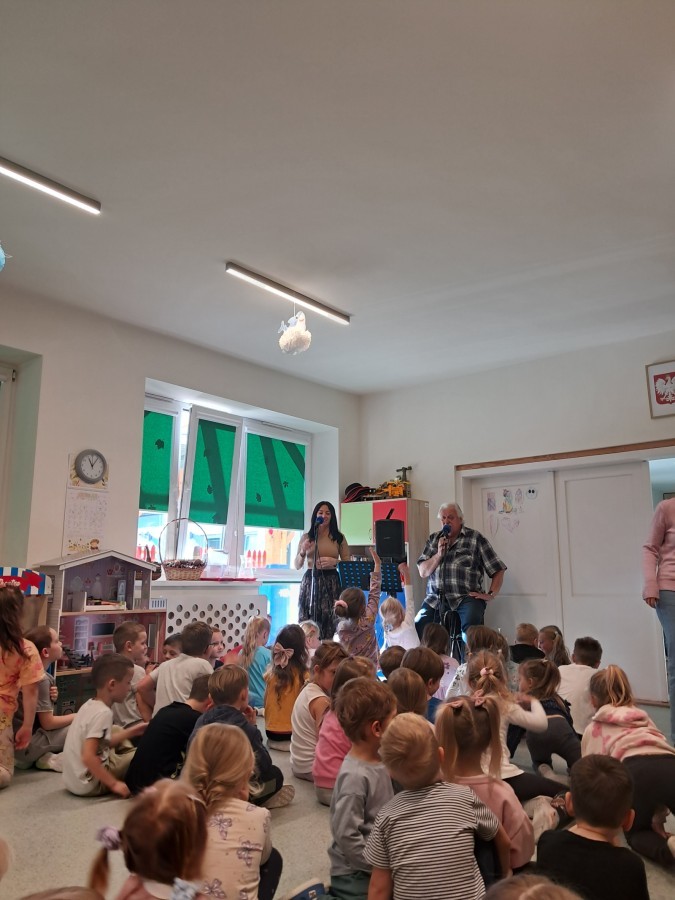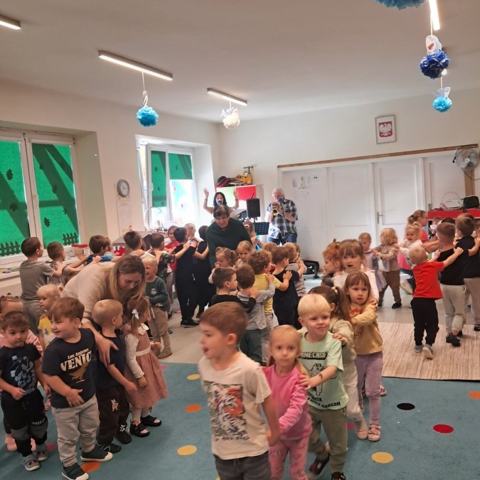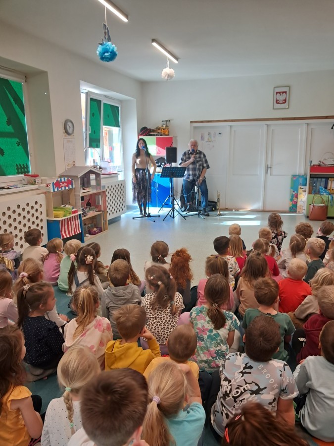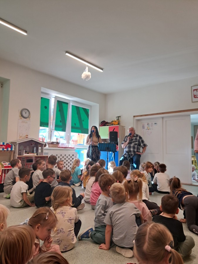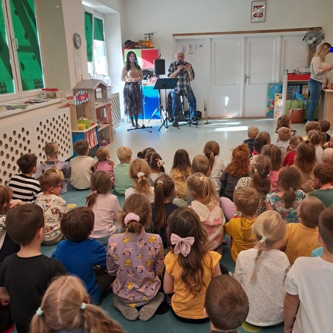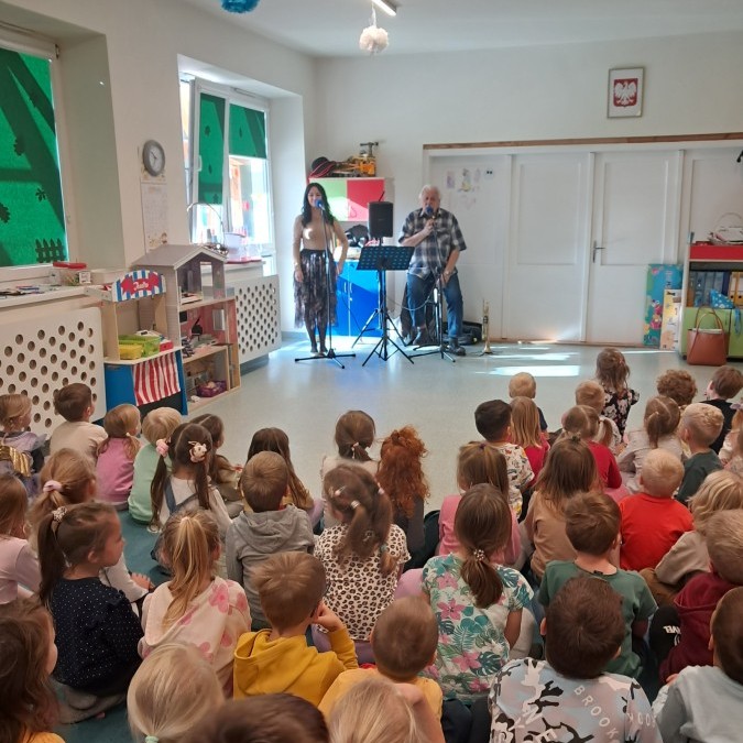 Dzieci z naszego przedszkola wzięły udział w wyjątkowym spotkaniu muzycznym przygotowanym przez Agencję Artystyczną Metrum - Forte. Podczas zajęć wyruszyły w niezwykłą podróż wzdłuż biegu Wisły, odkrywając bogactwo polskich tradycji muzycznych. Przedszkolaki poznały rytmy góralskie i śląskie, a także z radością zatańczyły trojaka i kujawiaka. To spotkanie było prawdziwą muzyczną wyprawą po naszym kraju - pełną tańca, śpiewu i niezapomnianych wrażeń!