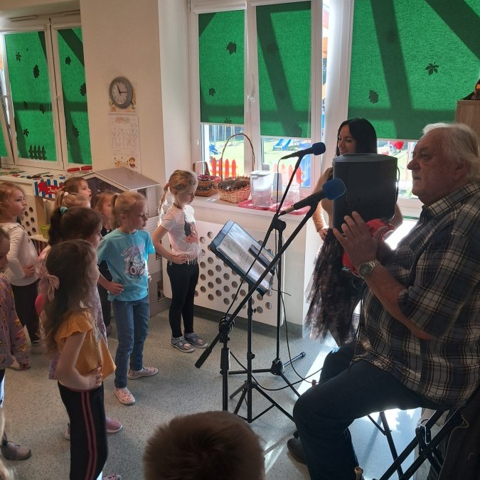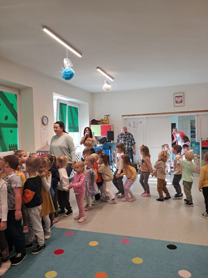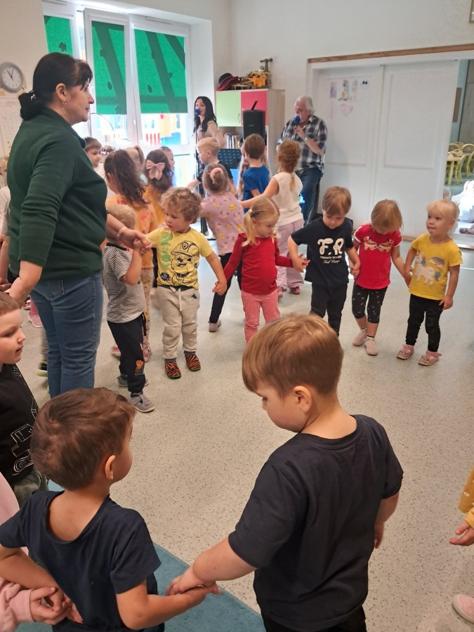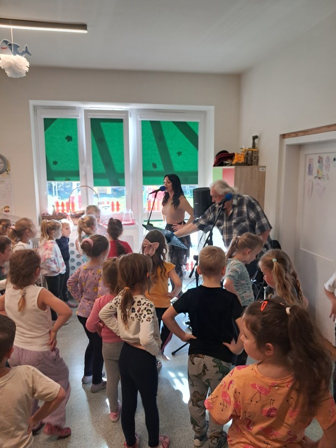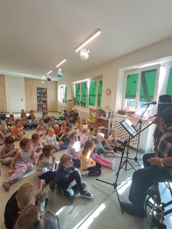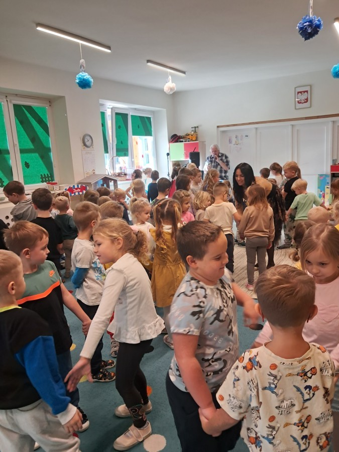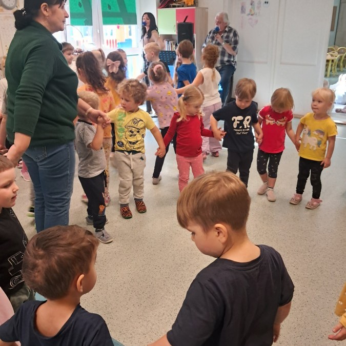 Dzieci z naszego przedszkola wzięły udział w wyjątkowym spotkaniu muzycznym przygotowanym przez Agencję Artystyczną Metrum - Forte. Podczas zajęć wyruszyły w niezwykłą podróż wzdłuż biegu Wisły, odkrywając bogactwo polskich tradycji muzycznych. Przedszkolaki poznały rytmy góralskie i śląskie, a także z radością zatańczyły trojaka i kujawiaka. To spotkanie było prawdziwą muzyczną wyprawą po naszym kraju - pełną tańca, śpiewu i niezapomnianych wrażeń!