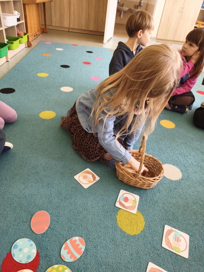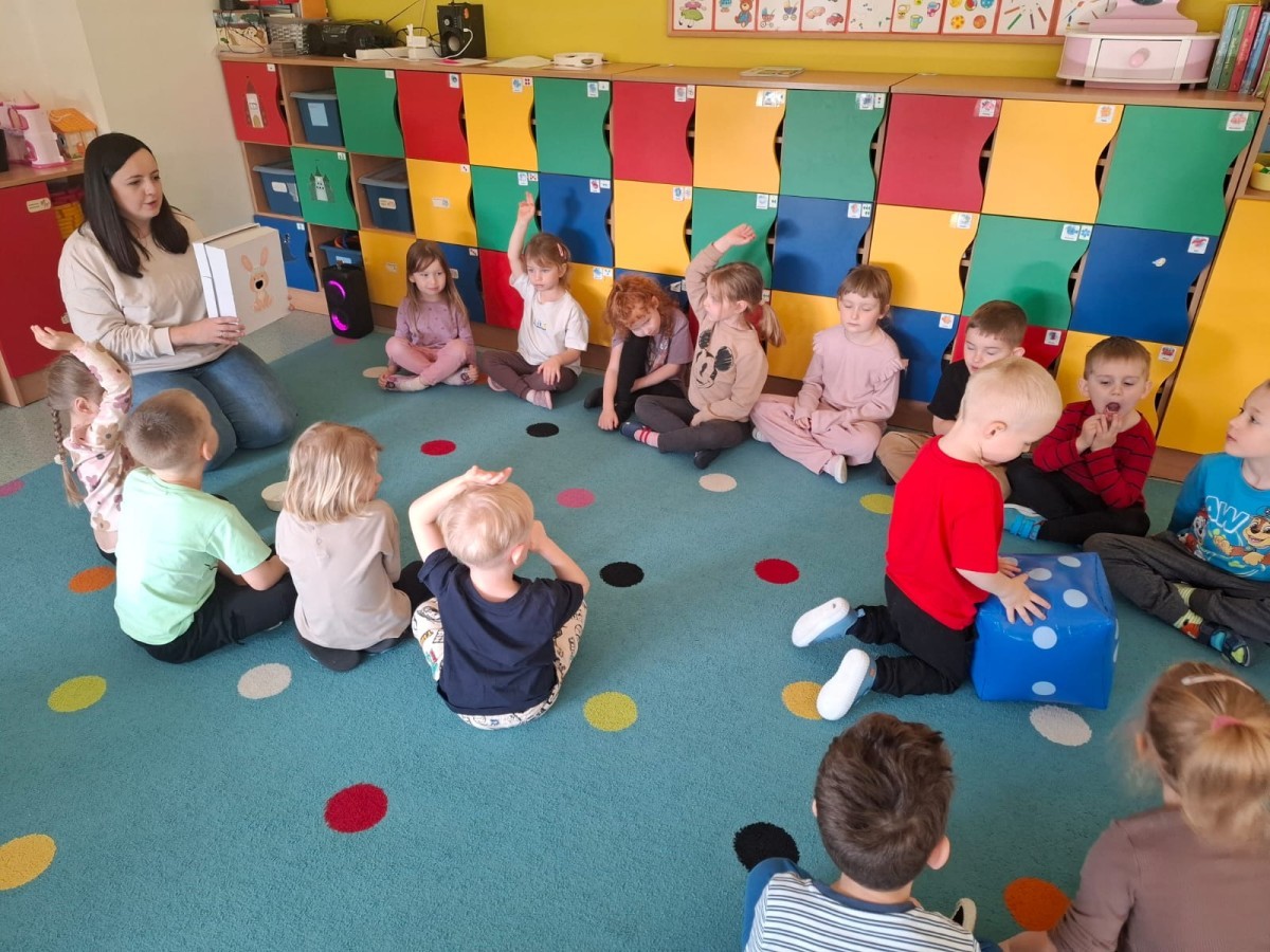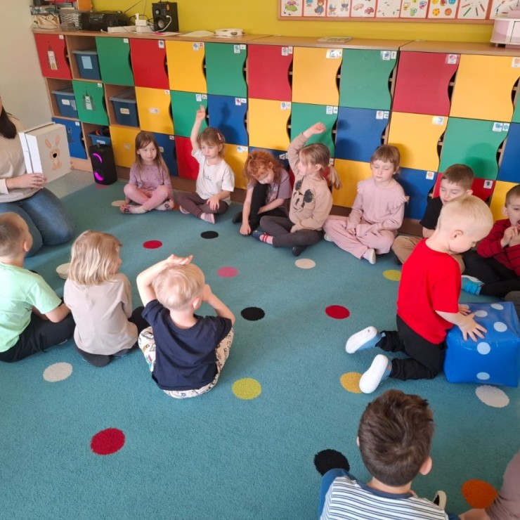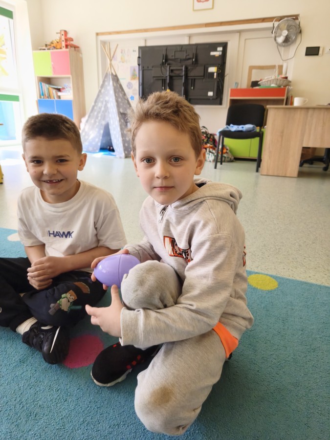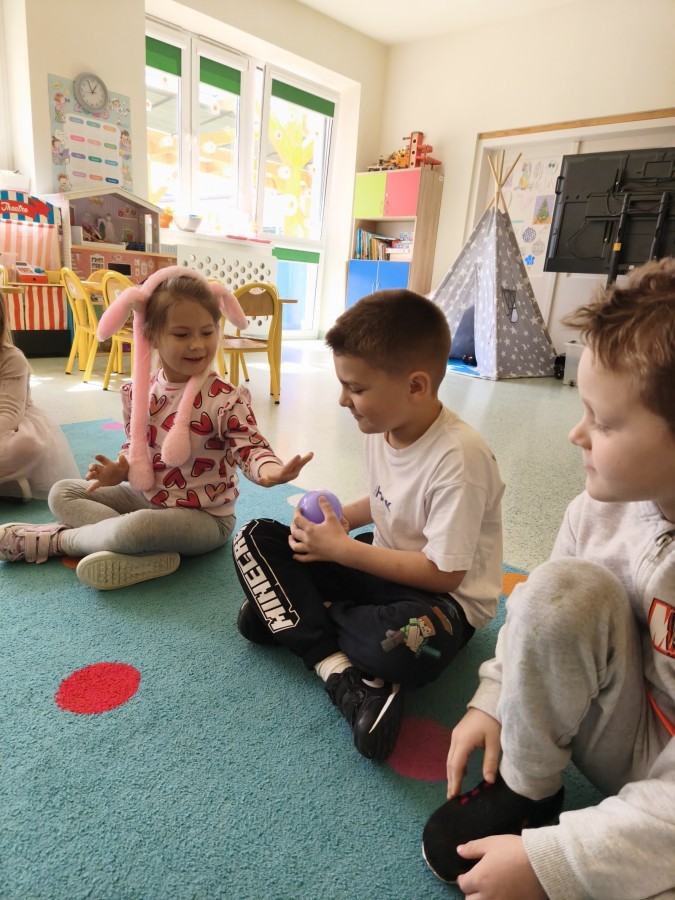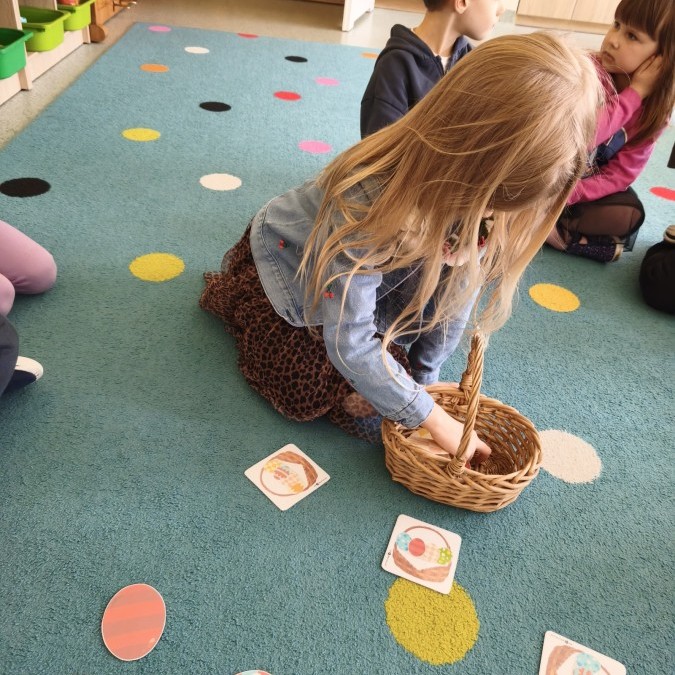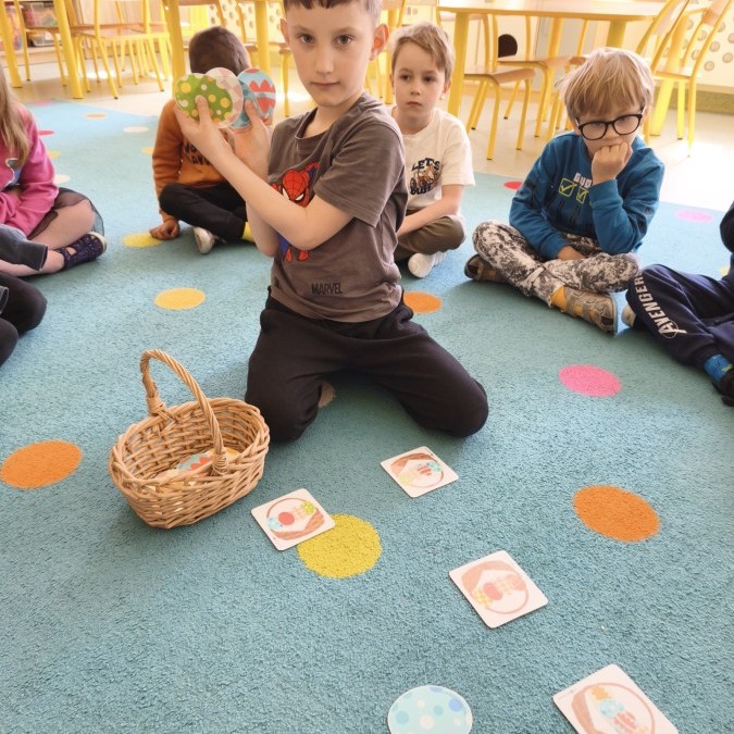 Wspólnie odkrywali艣my, sk膮d bior膮 si臋 kolorowe pisanki, dlaczego w koszyczku znajduj膮 si臋 ró偶ne symbole oraz jak膮 rol臋 w wielkanocnych opowie艣ciach odgrywa zaj膮czek. Rozmowy by艂y pe艂ne rado艣ci, ciekawych spostrze偶e艅 i dzieci臋cej wyobra藕ni.