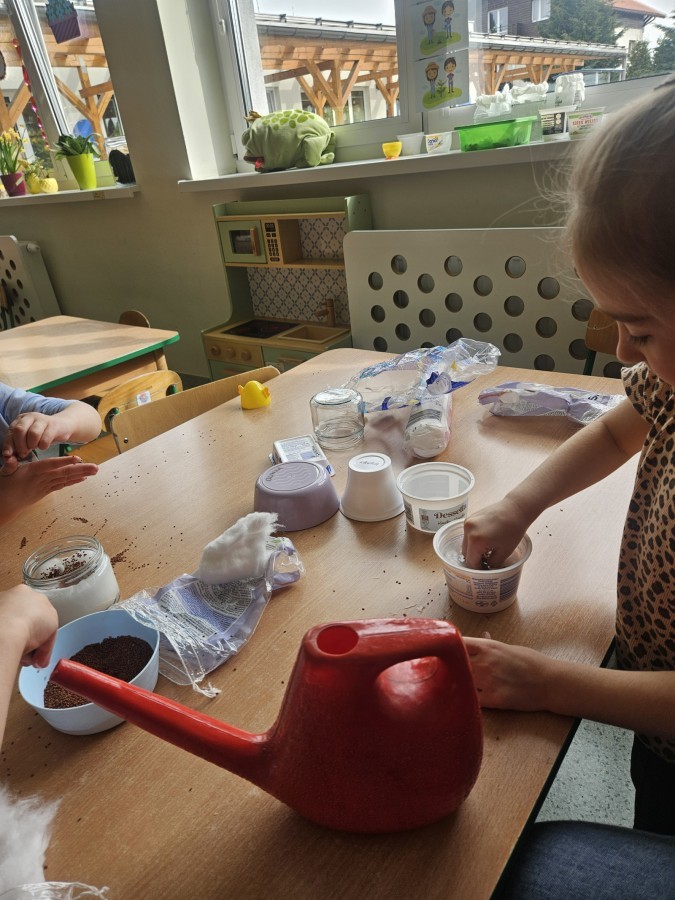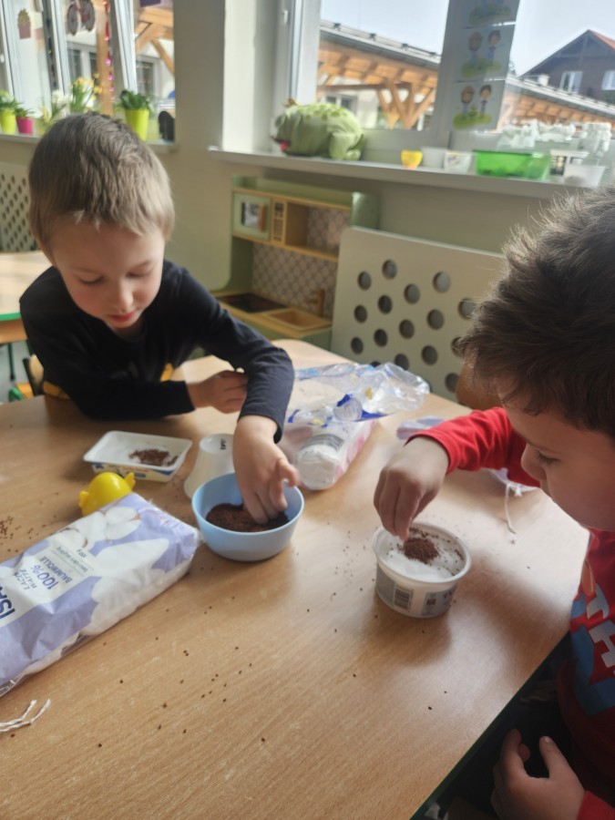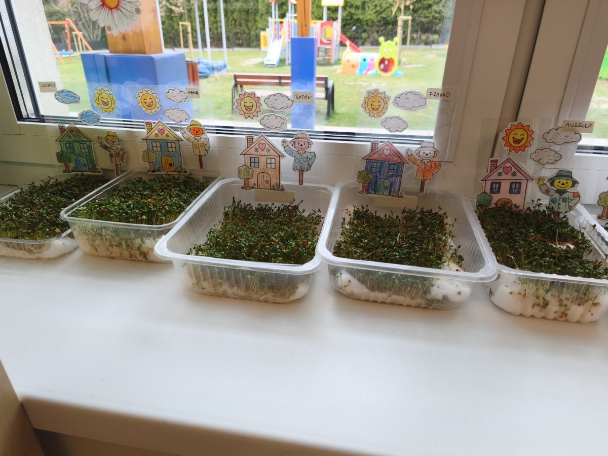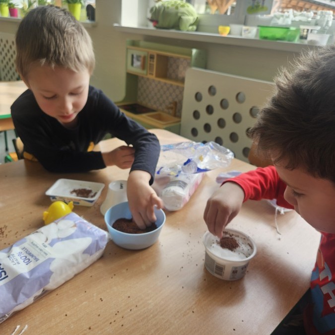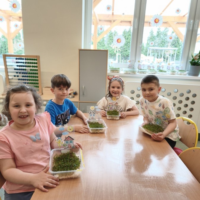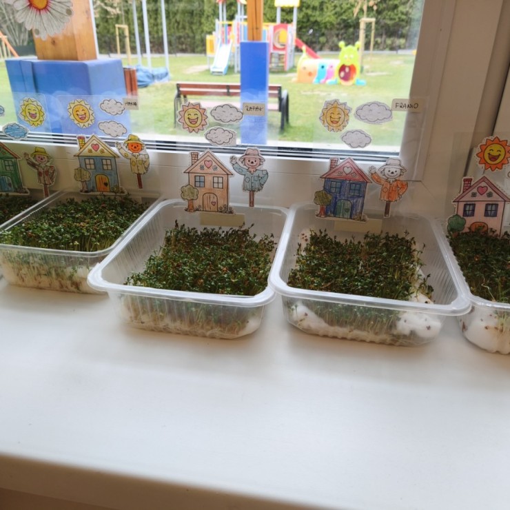 W tym tygodniu nasze przedszkolaki zamieni艂y si臋 w ma艂ych ogrodników. Z ogromnym zaanga偶owaniem sadzi艂y rze偶uch臋, poznaj膮c przy tym, jak z male艅kich nasionek wyrasta co艣 zielonego i pysznego.