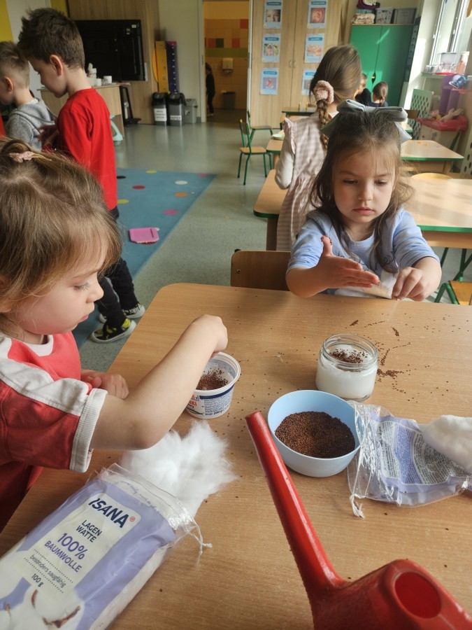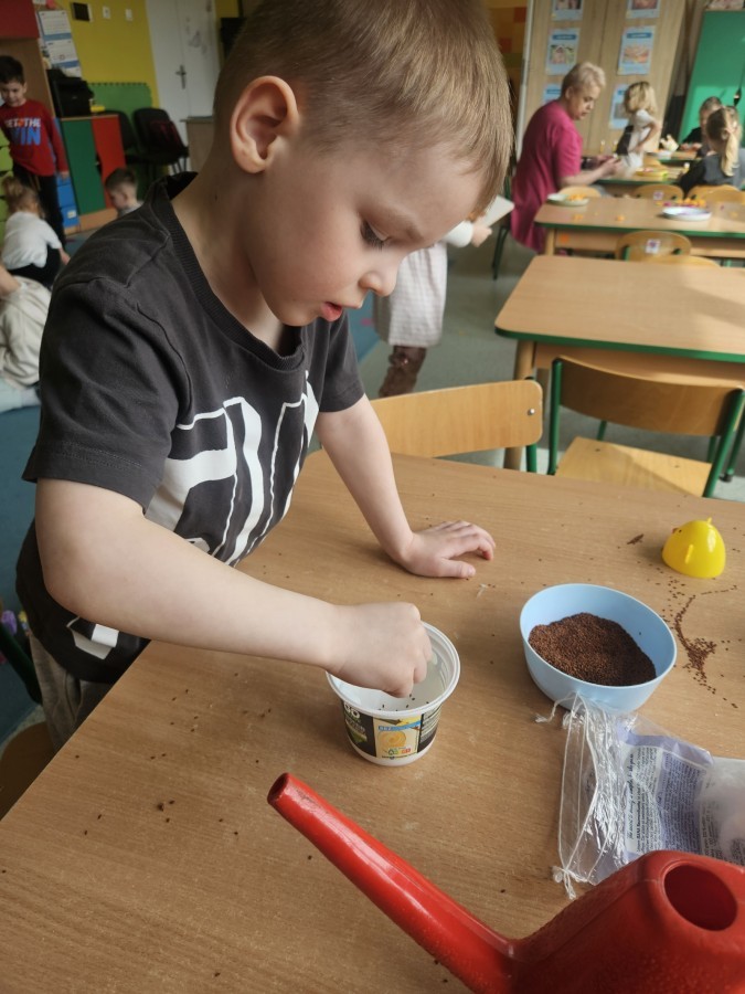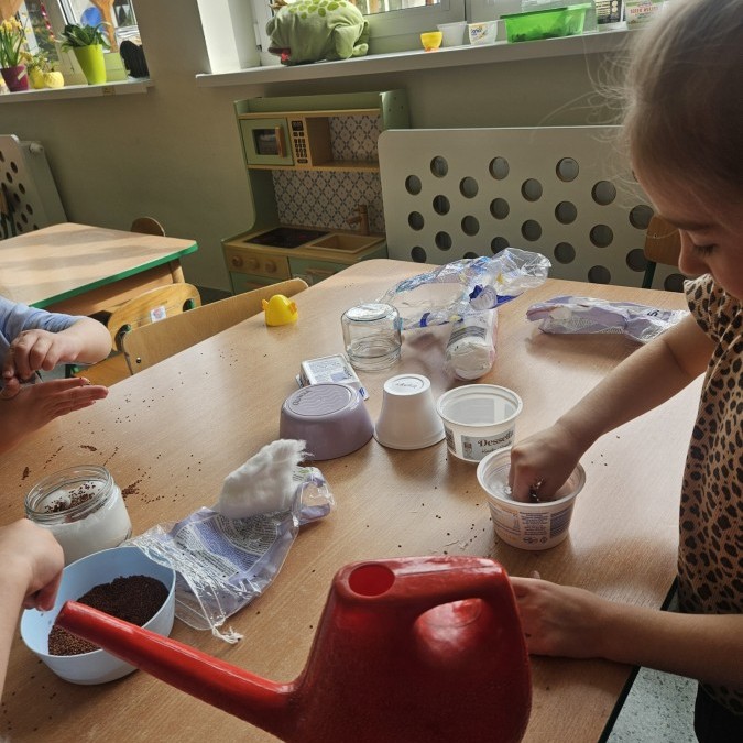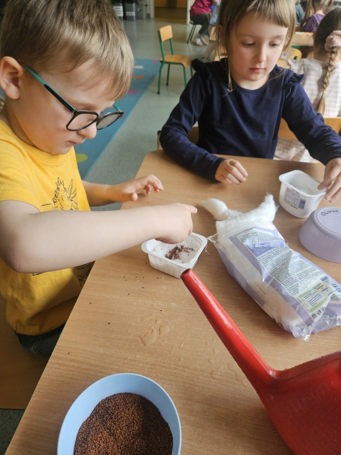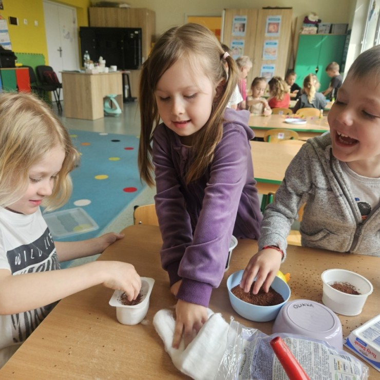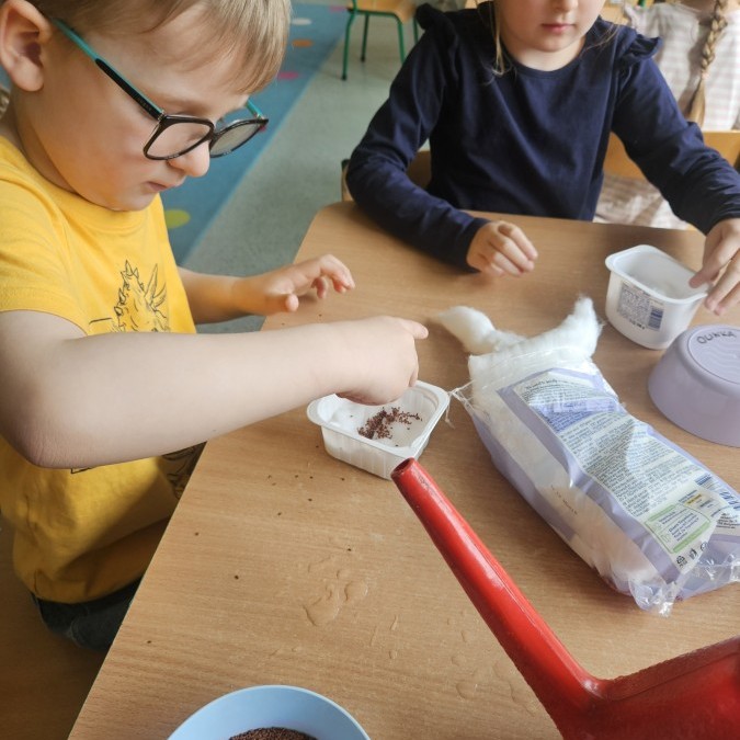 Dzieci podlewa艂y swoje pojemniczki, obserwowa艂y pierwsze zmiany i z rado艣ci膮 opowiada艂y, komu w domu poka偶膮 swoje zielone „ogródki”.