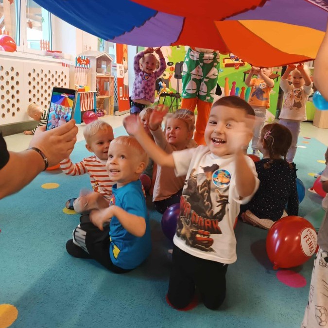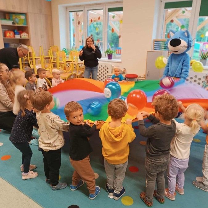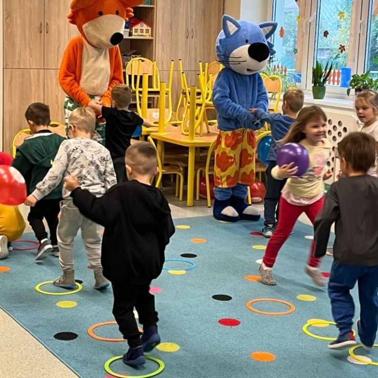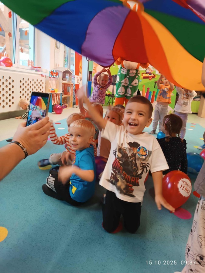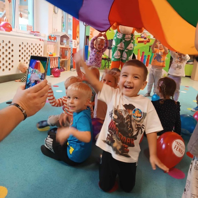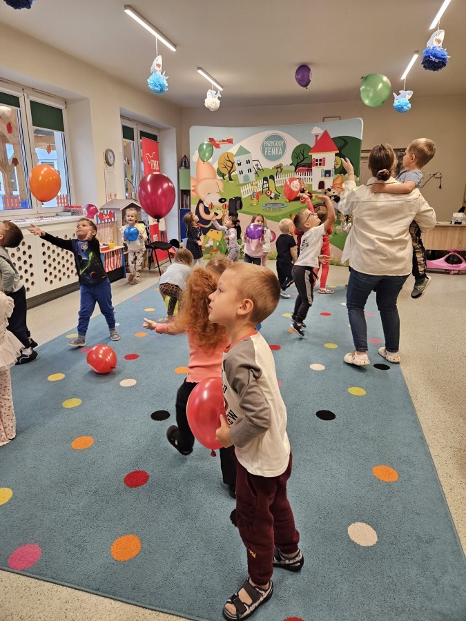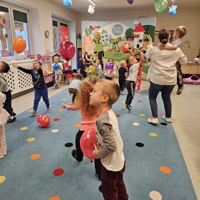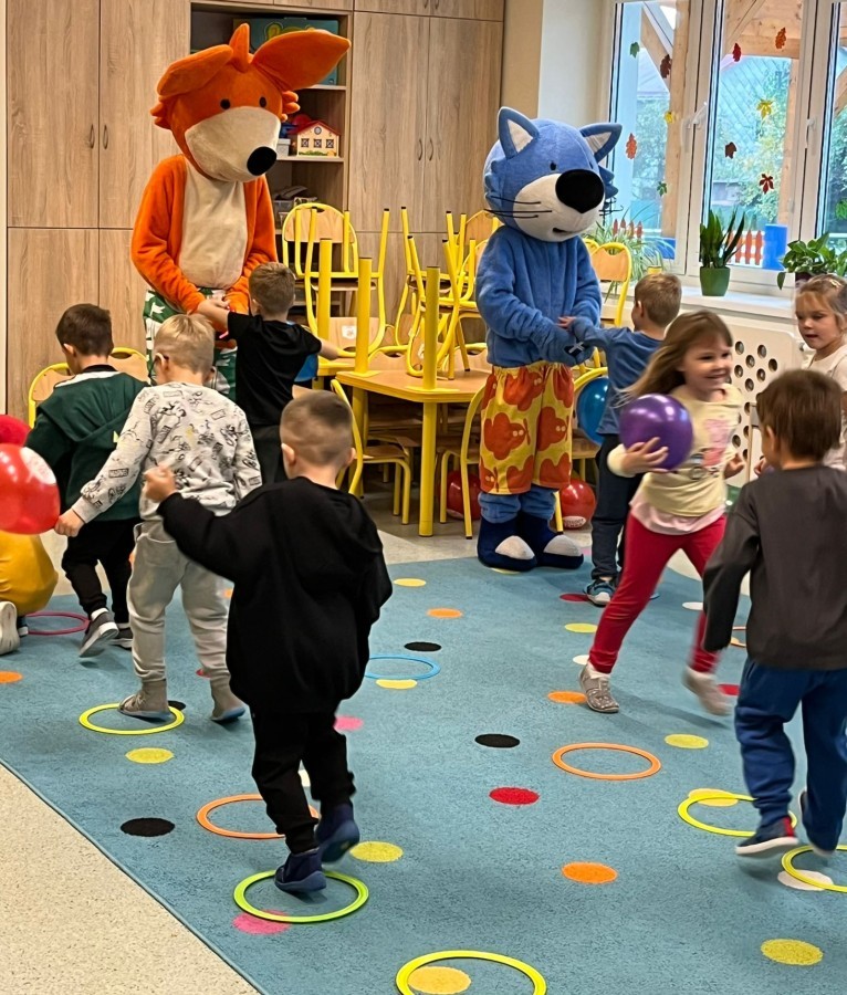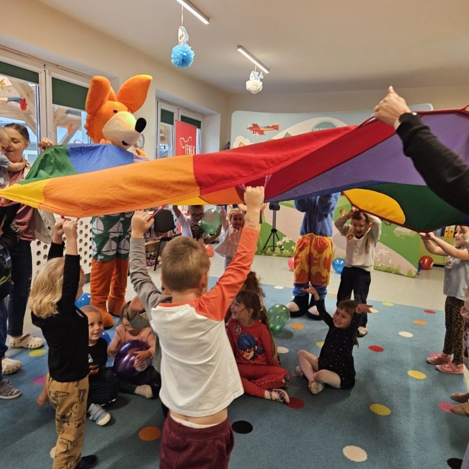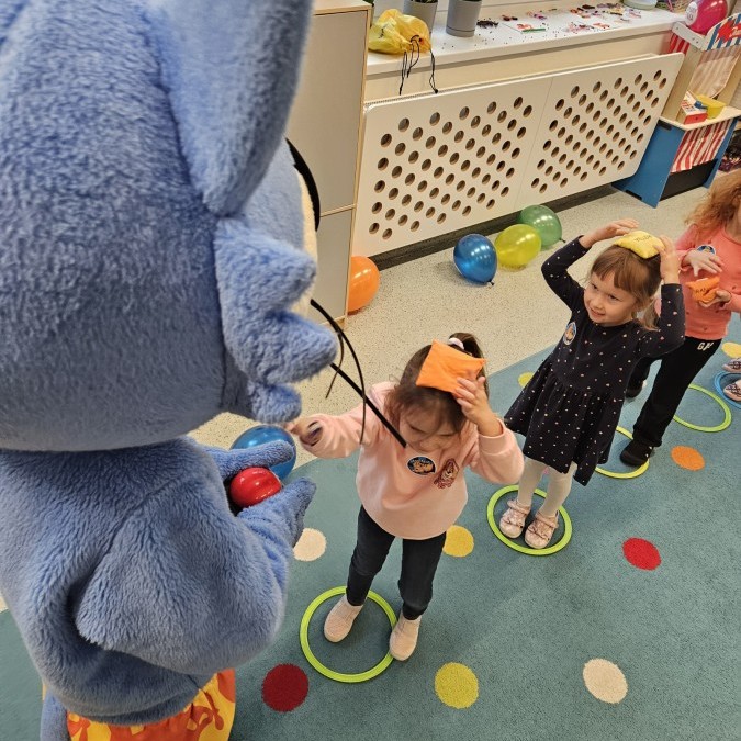 Po wspólnym czytaniu przyszed艂 czas na aktywn膮 zabaw臋. Dzieci wzi臋艂y udzia艂 w ró偶norodnych zabawach ruchowych i integracyjnych, które wywo艂a艂y mnóstwo 艣miechu i rado艣ci. Nie zabrak艂o równie偶 ta艅ca — przedszkolaki z entuzjazmem uczy艂y si臋 prostych uk艂adów i rytmicznych ruchów, ta艅cz膮c razem z prowadz膮cymi.