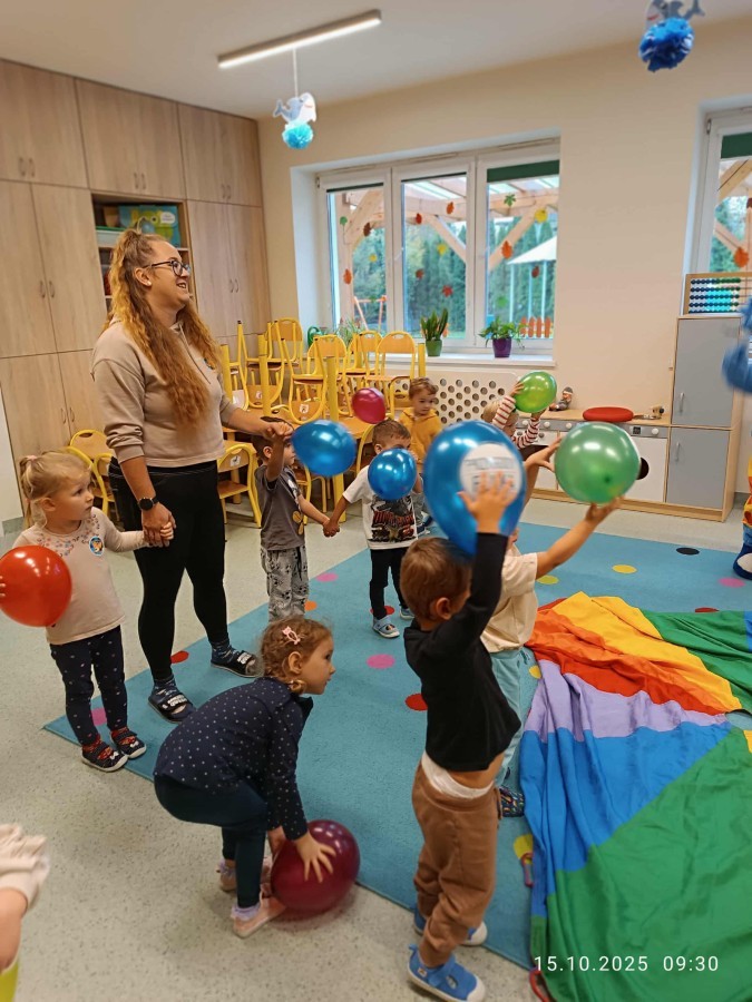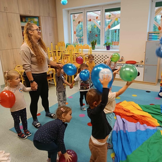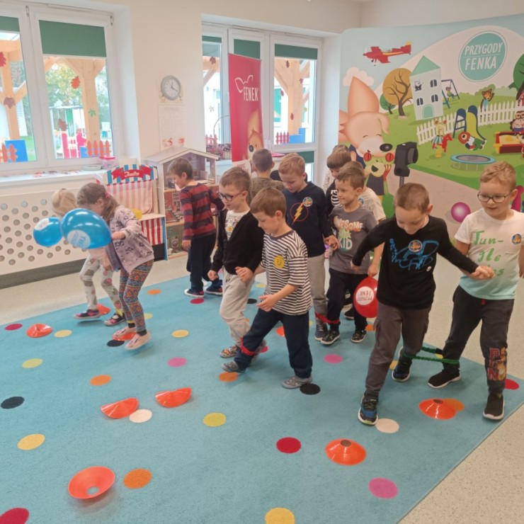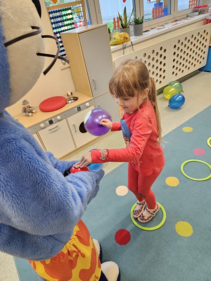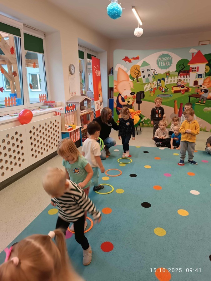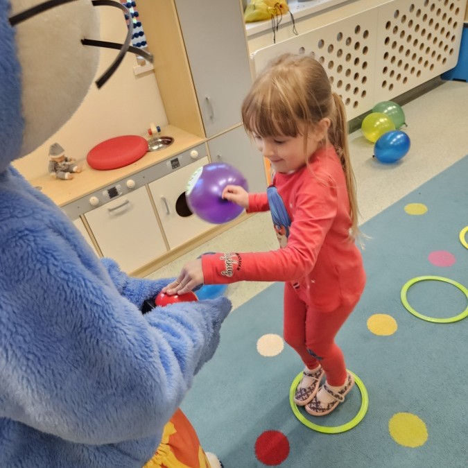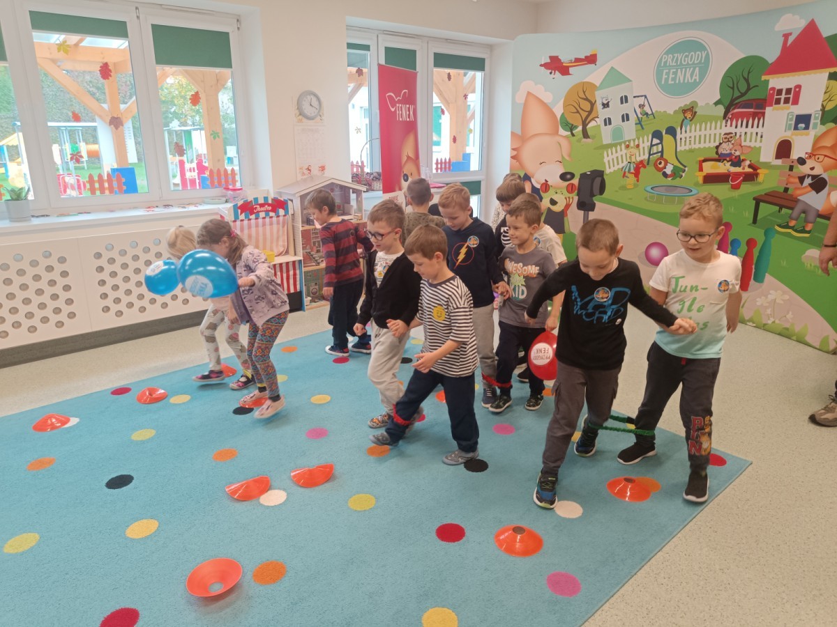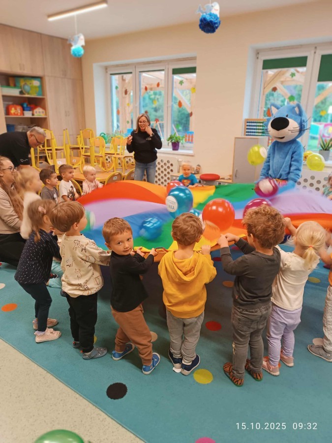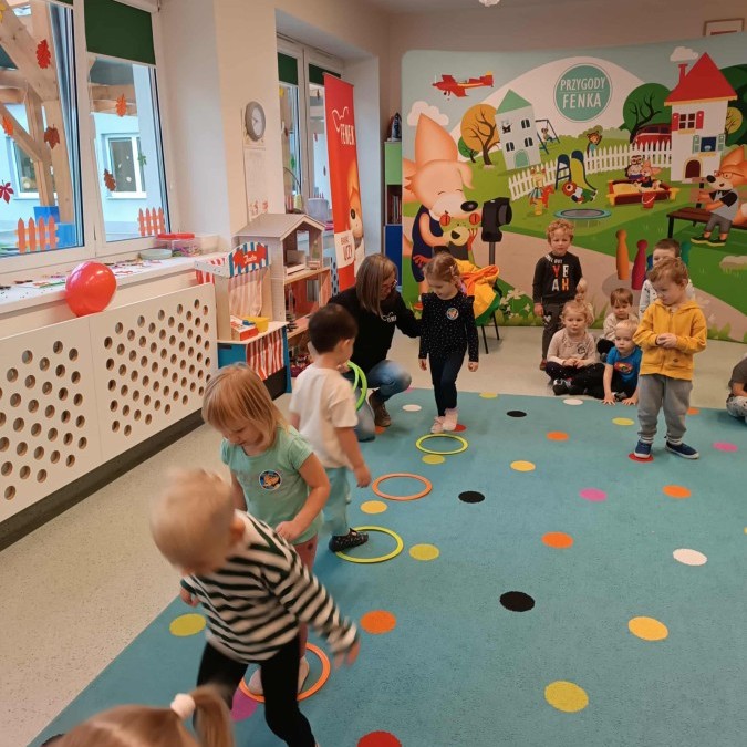 Po wspólnym czytaniu przyszed艂 czas na aktywn膮 zabaw臋. Dzieci wzi臋艂y udzia艂 w ró偶norodnych zabawach ruchowych i integracyjnych, które wywo艂a艂y mnóstwo 艣miechu i rado艣ci. Nie zabrak艂o równie偶 ta艅ca — przedszkolaki z entuzjazmem uczy艂y si臋 prostych uk艂adów i rytmicznych ruchów, ta艅cz膮c razem z prowadz膮cymi.