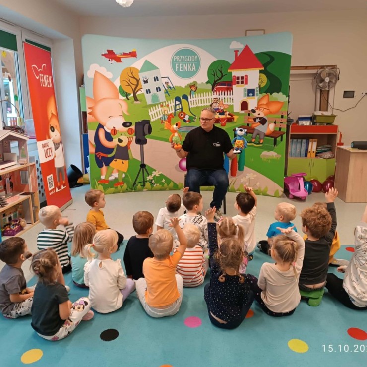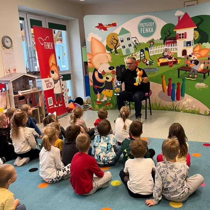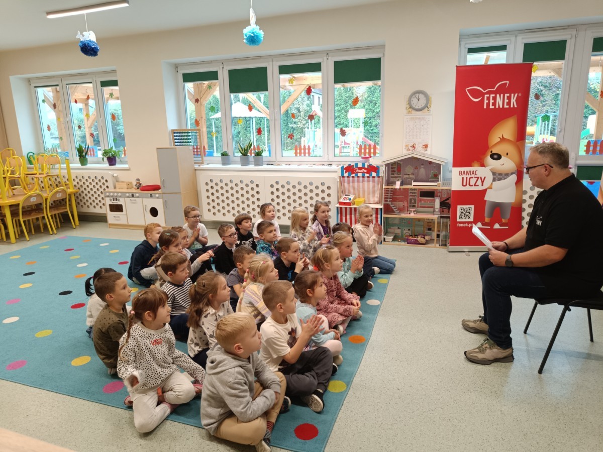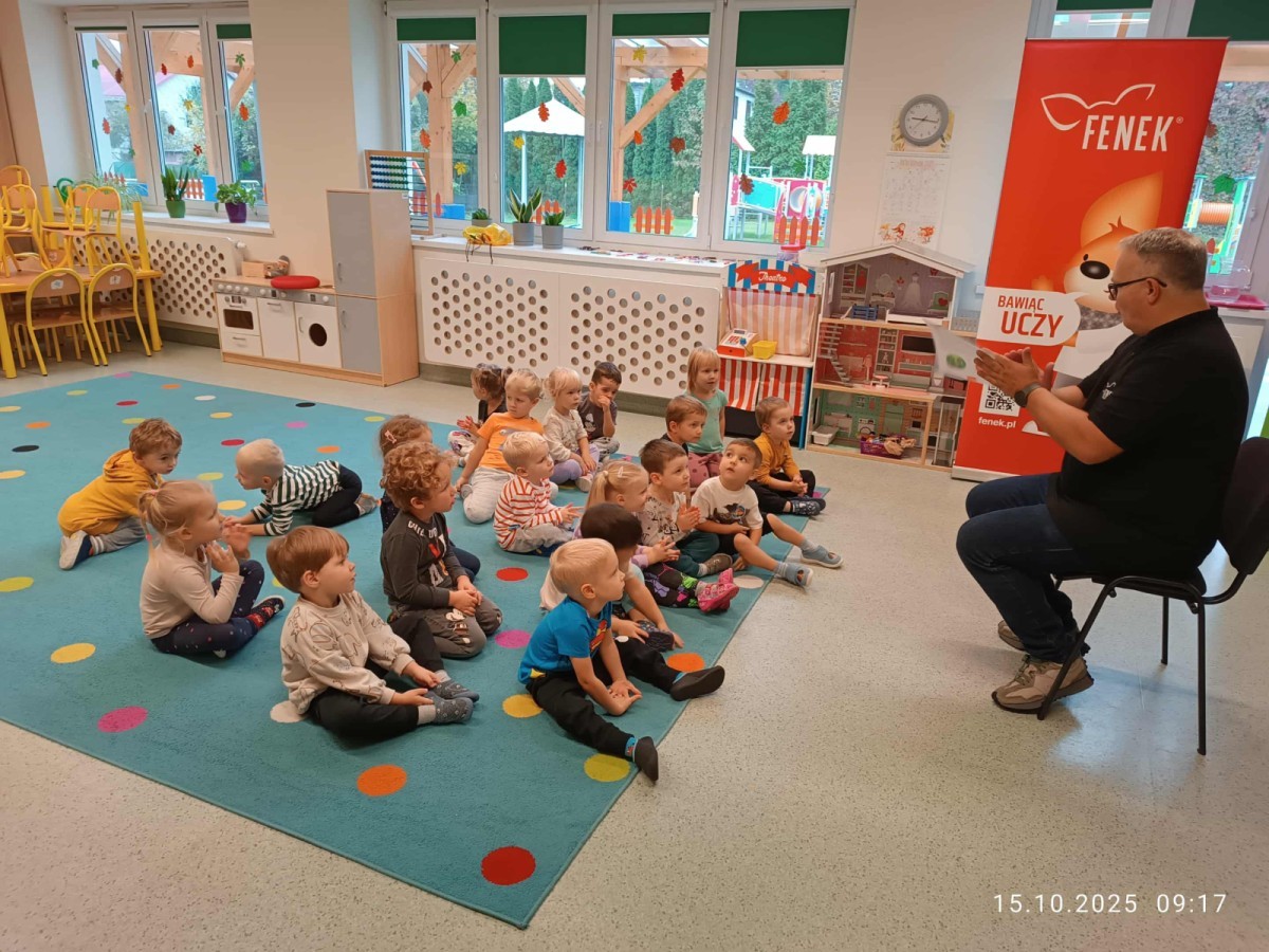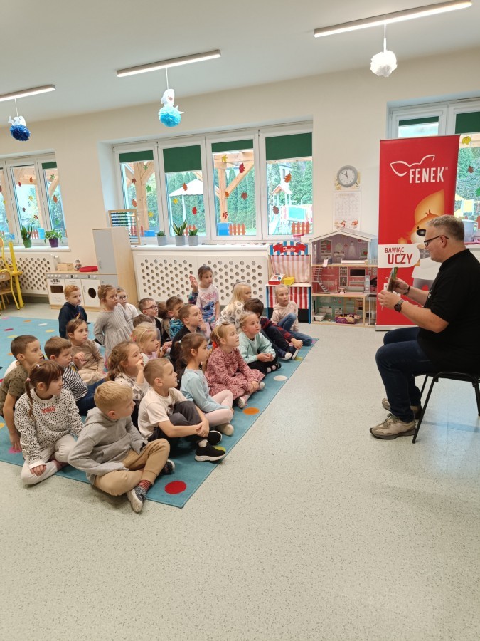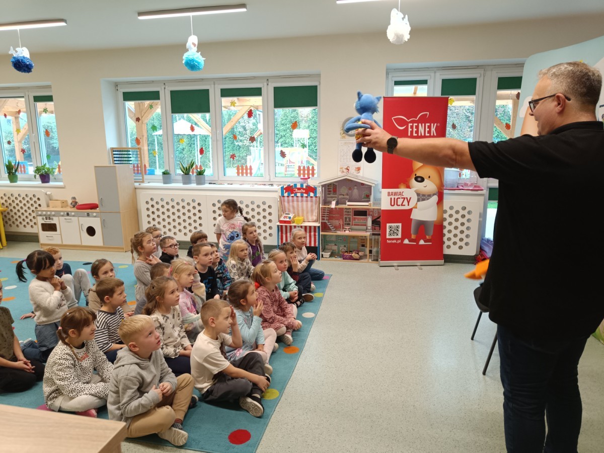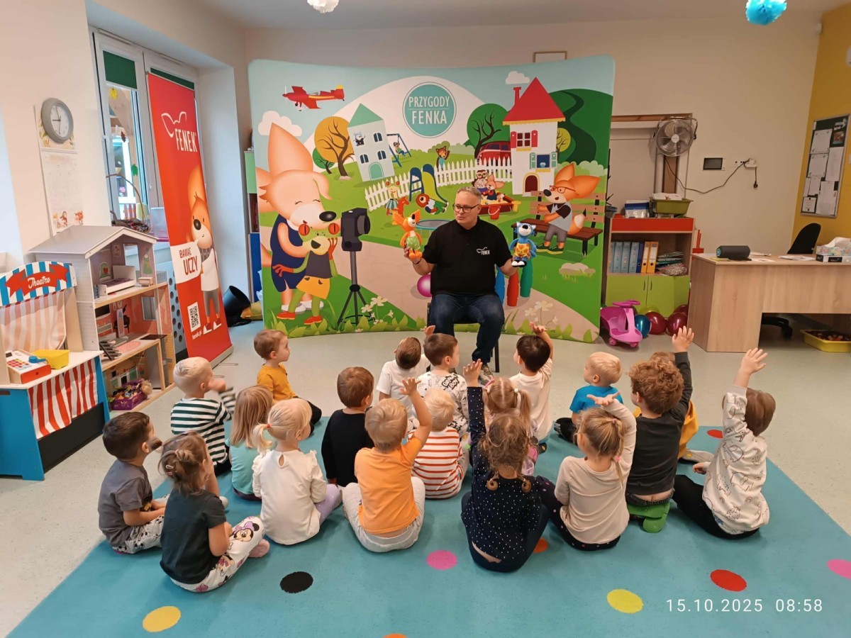 W naszym przedszkolu odby艂o si臋 wyj膮tkowe spotkanie z Fenkiem - bohaterem edukacyjnych ksi膮偶eczek, który odwiedzi艂 dzieci. Ju偶 od pierwszych chwil atmosfera by艂a pe艂na entuzjazmu i ciekawo艣ci.