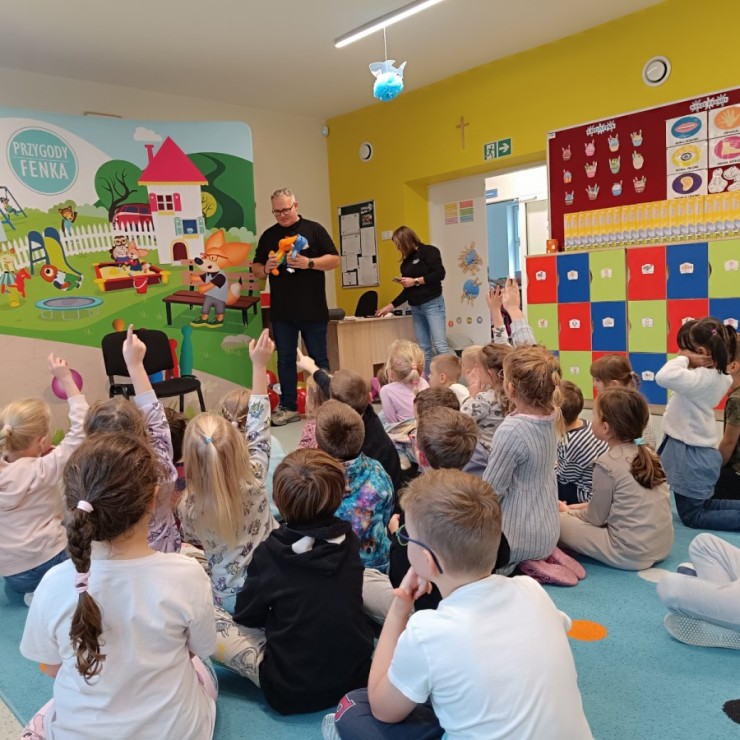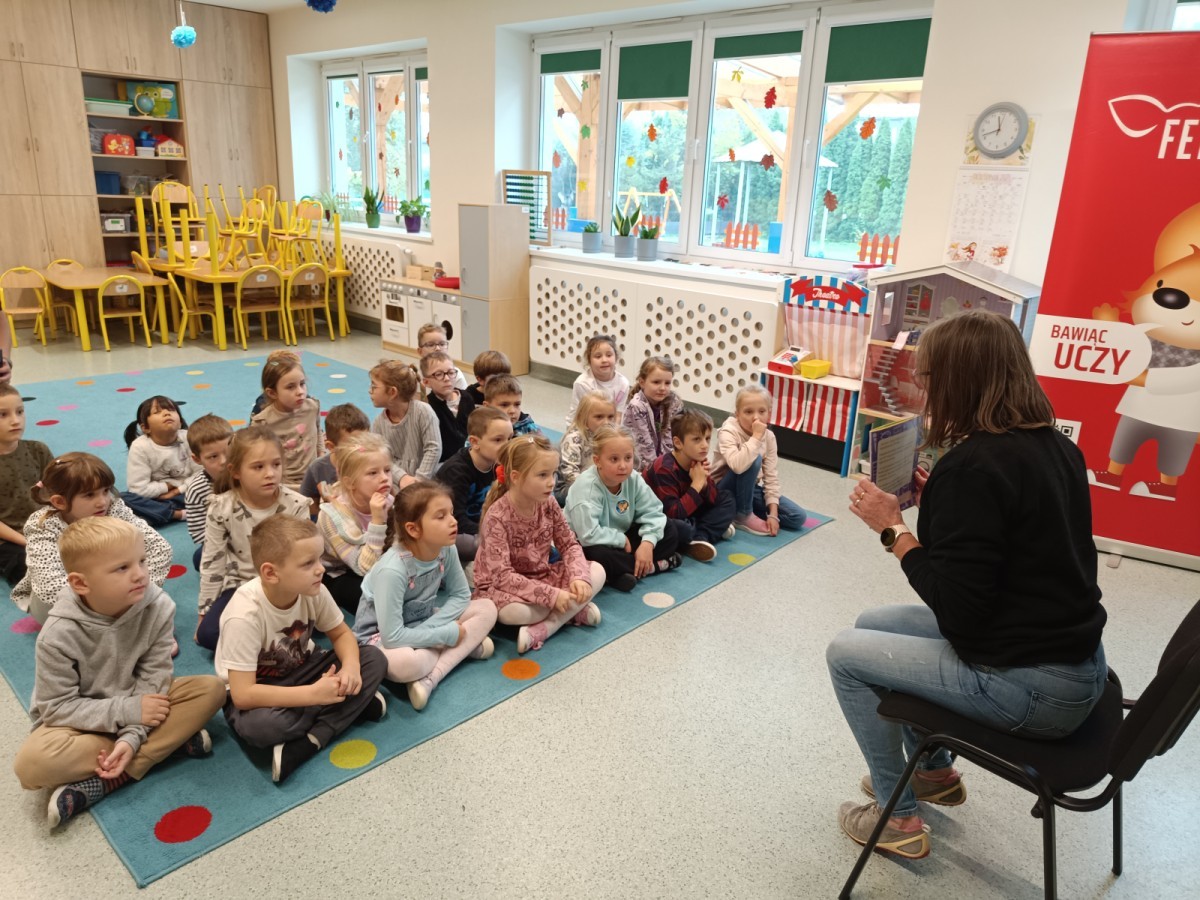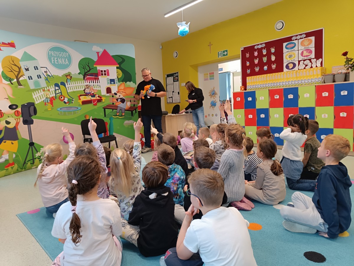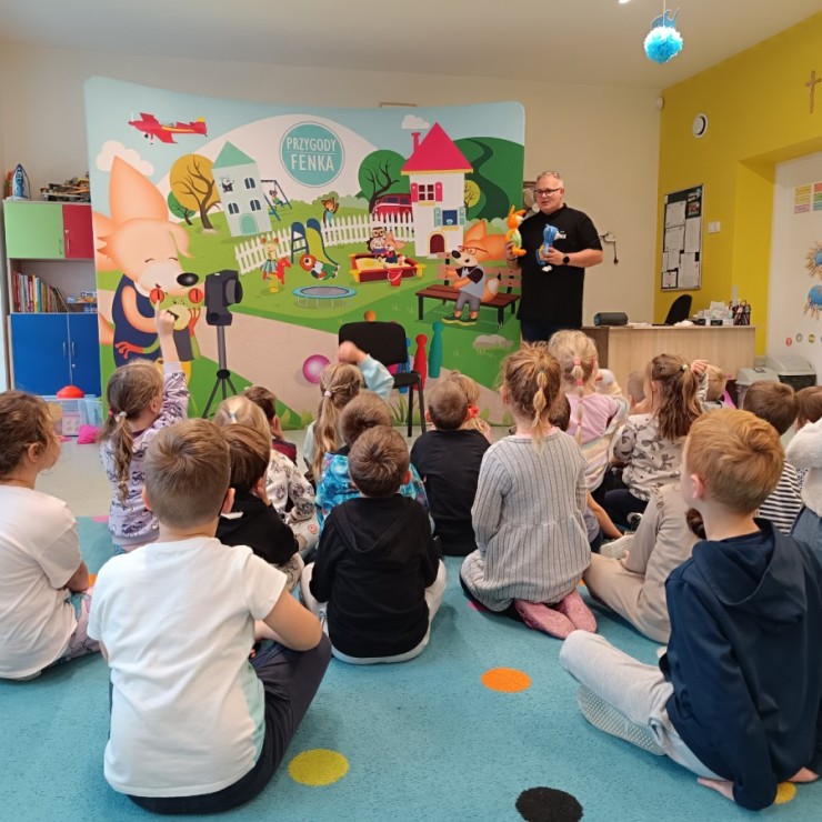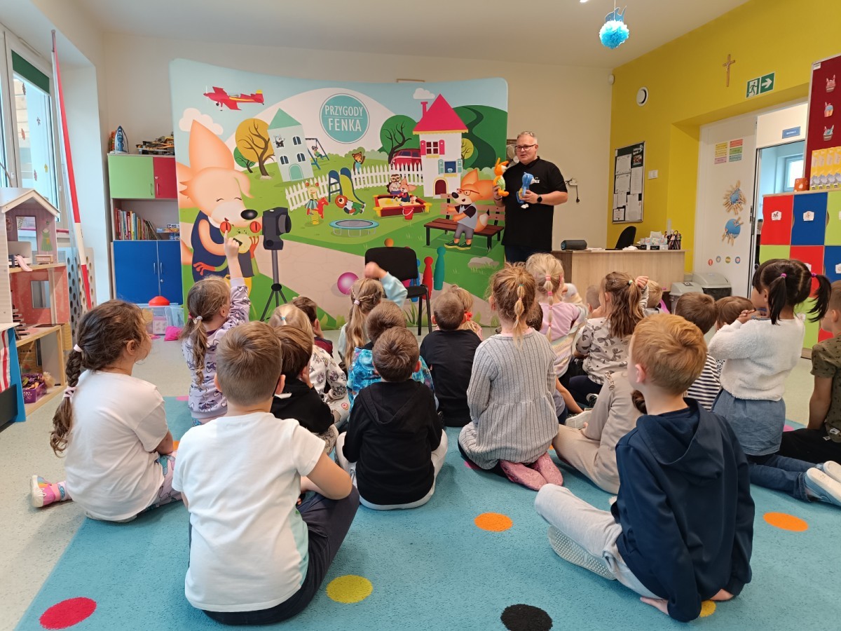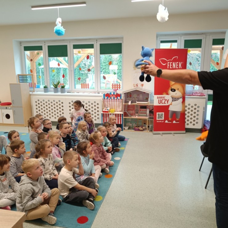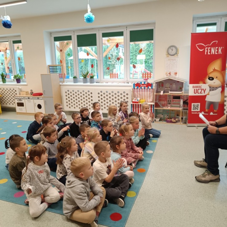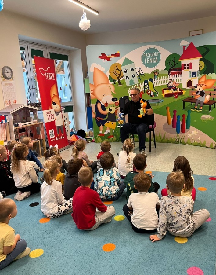 W naszym przedszkolu odby艂o si臋 wyj膮tkowe spotkanie z Fenkiem - bohaterem edukacyjnych ksi膮偶eczek, który odwiedzi艂 dzieci. Ju偶 od pierwszych chwil atmosfera by艂a pe艂na entuzjazmu i ciekawo艣ci.