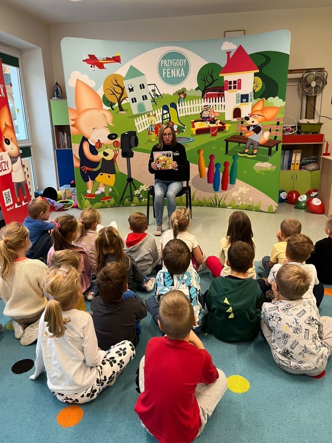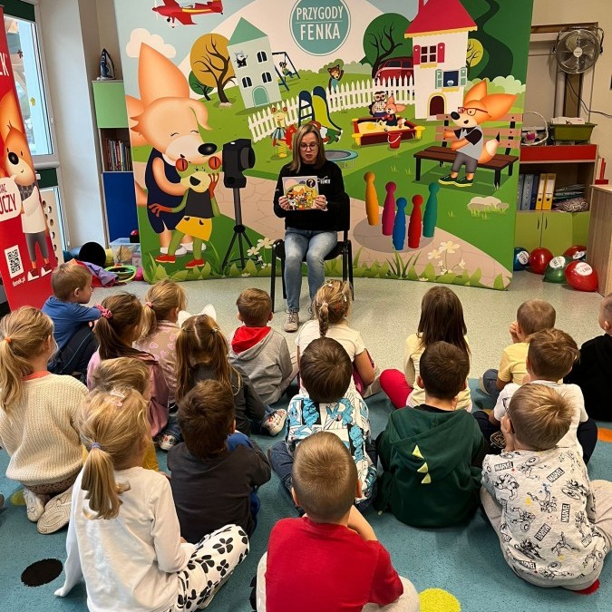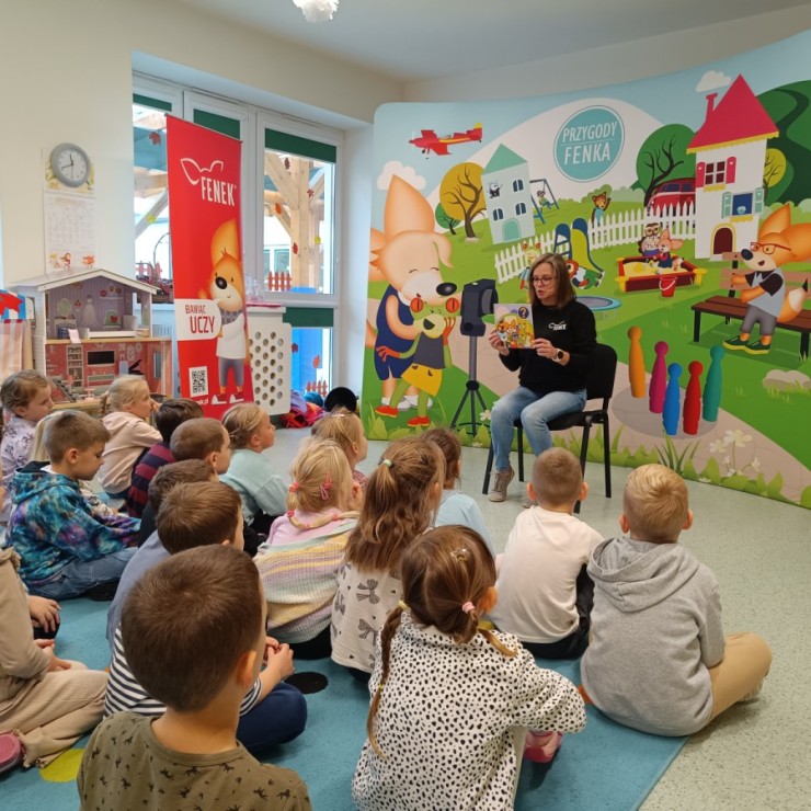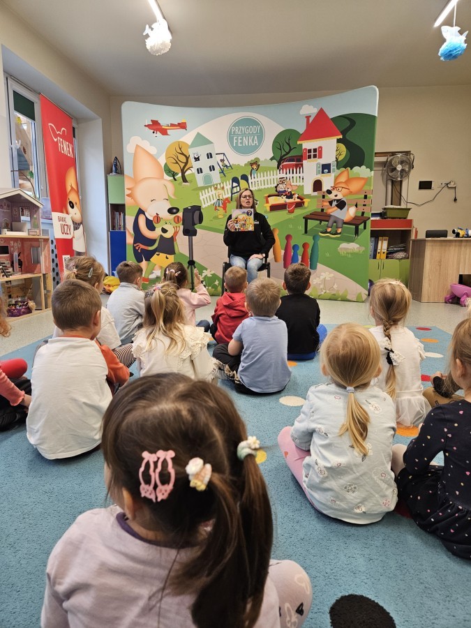 Na pocz膮tku dzieci z zaciekawieniem s艂ucha艂y jednej z przygód Fenka, poznaj膮c nowe warto艣ci i emocje. Opowie艣膰 by艂a nie tylko interesuj膮ca, ale te偶 inspiruj膮ca - zach臋ca艂a do rozmów o przyja藕ni, wspó艂pracy i empatii.