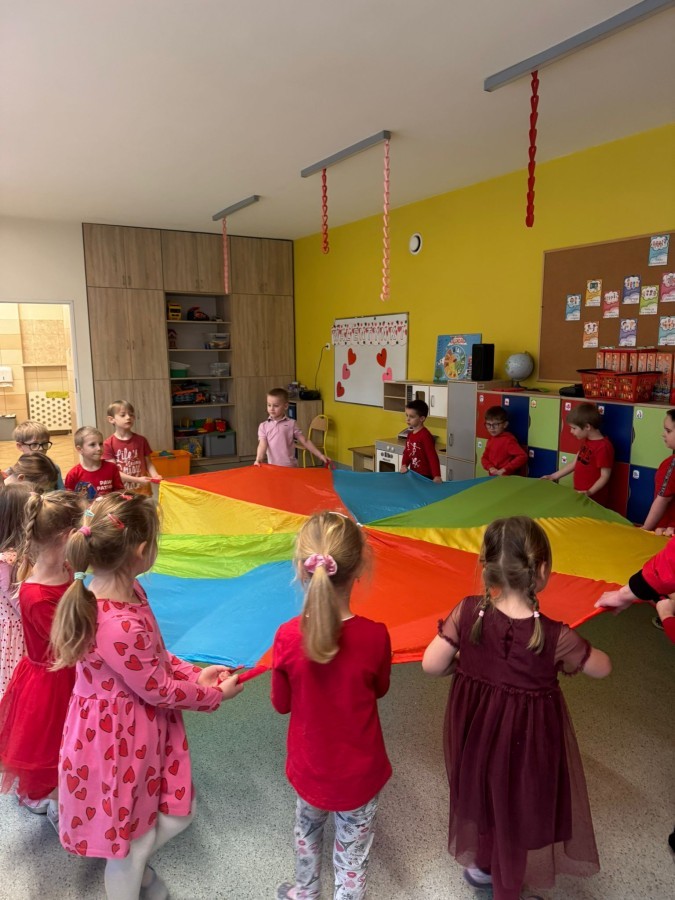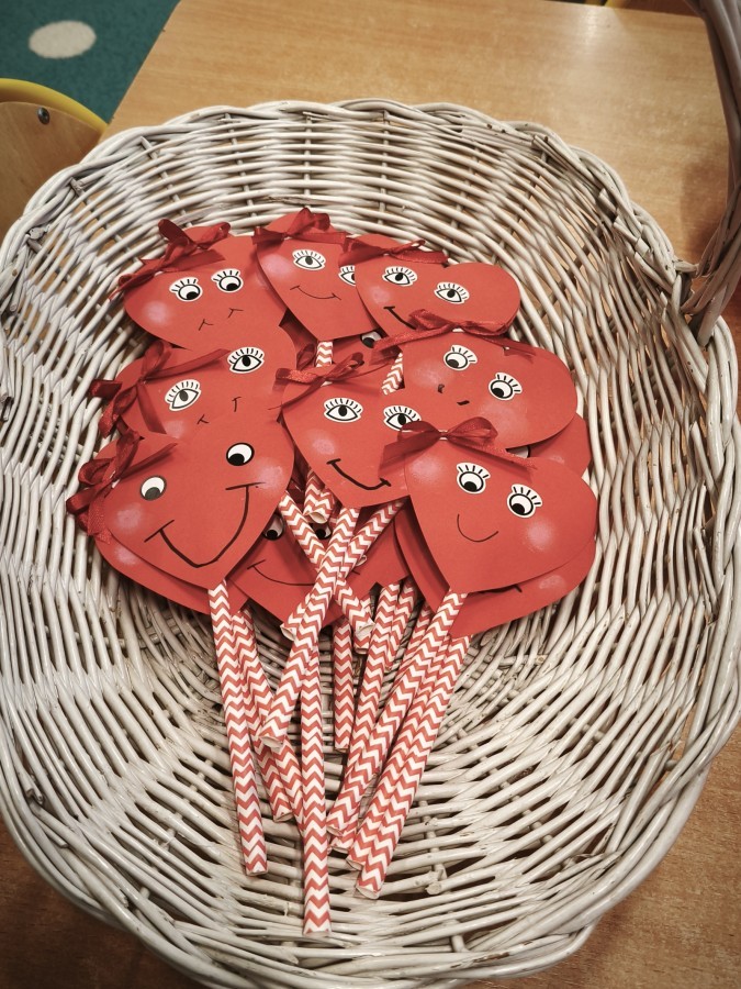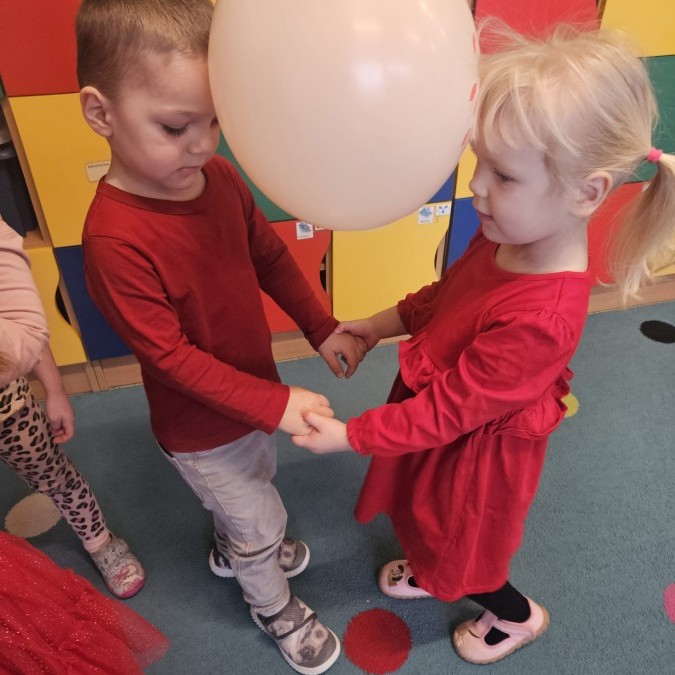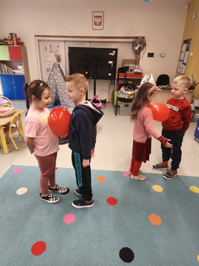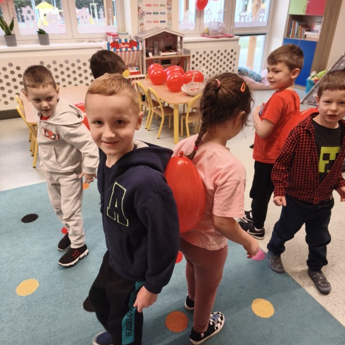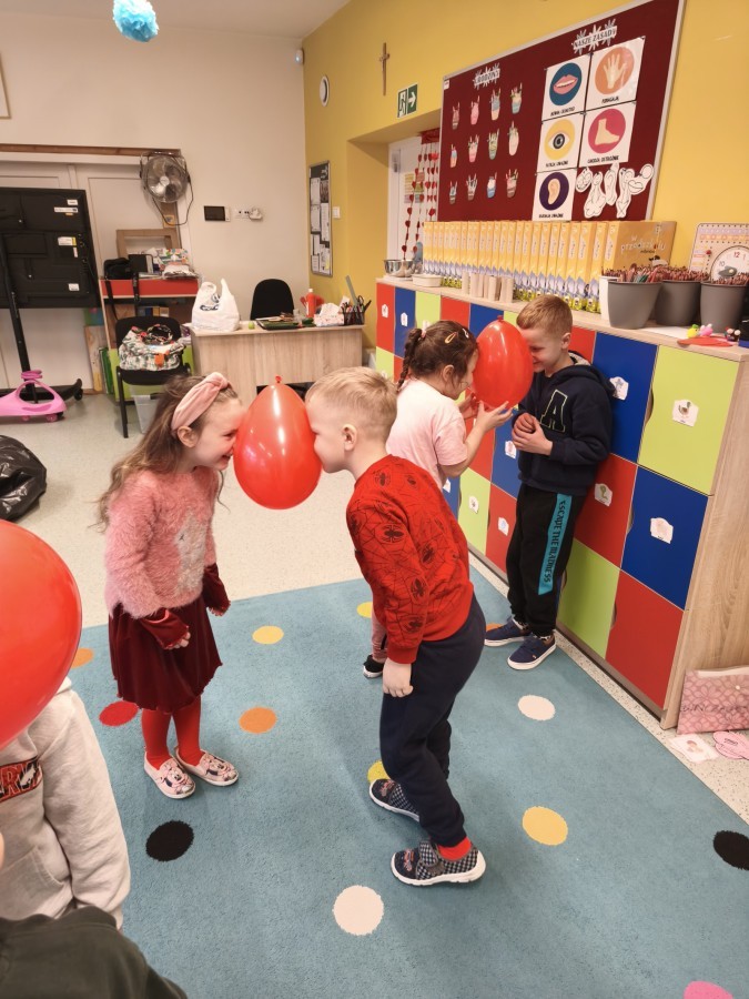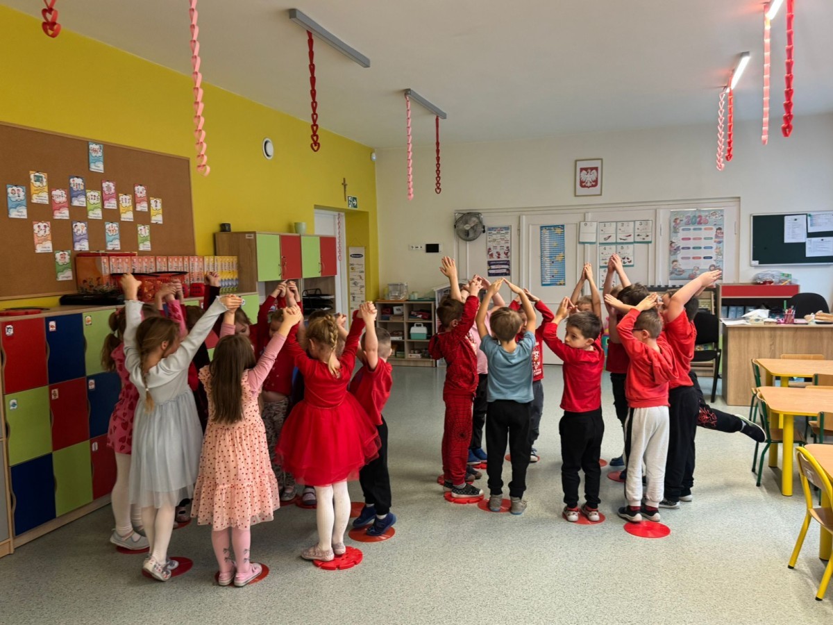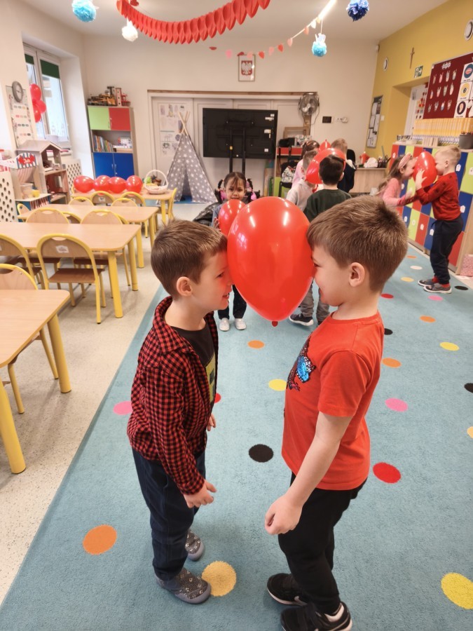 dekorowaliśmy sale, dzięki czemu całe przedszkole wypełniło się czerwienią, serduszkami i pozytywną energią.