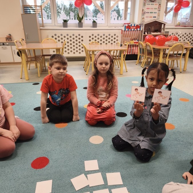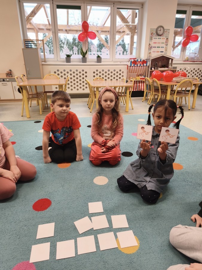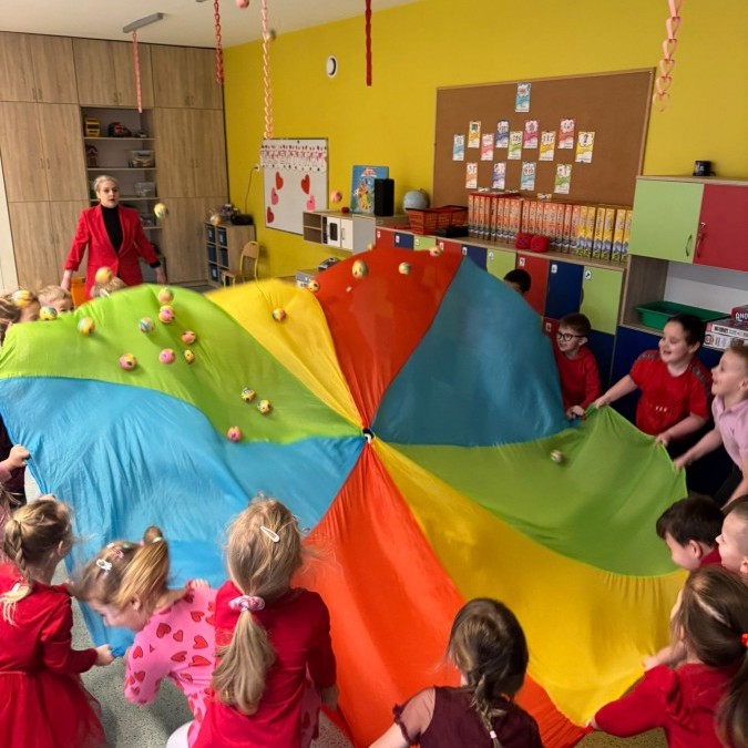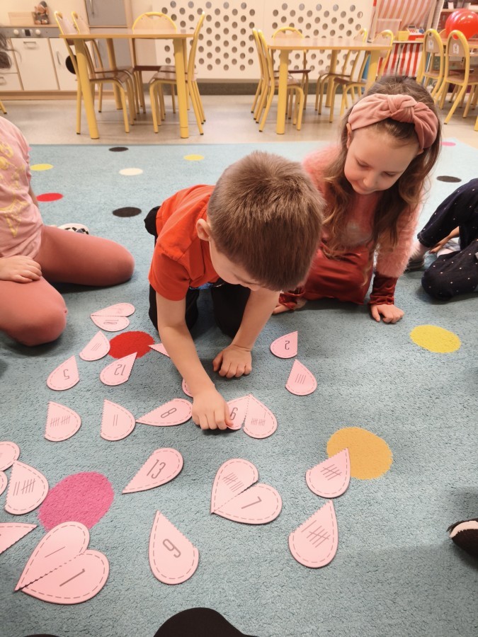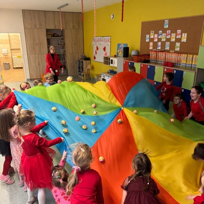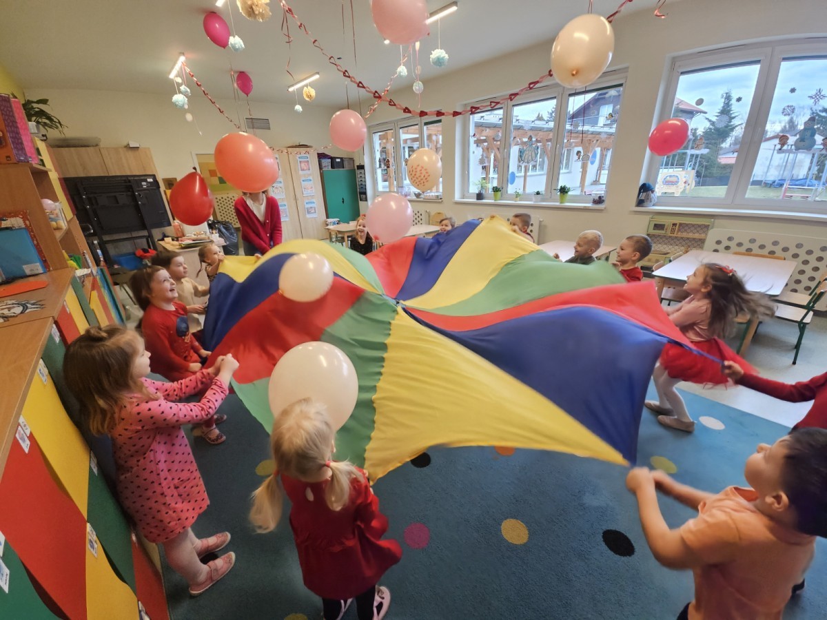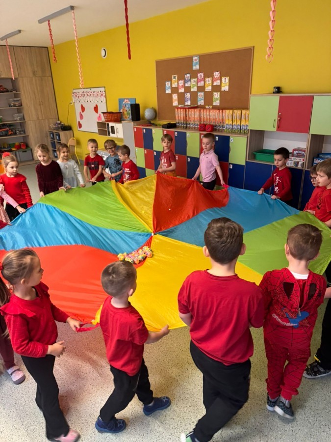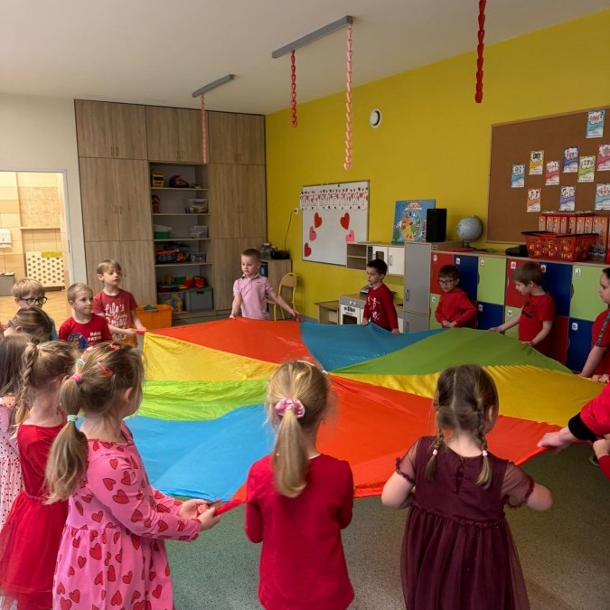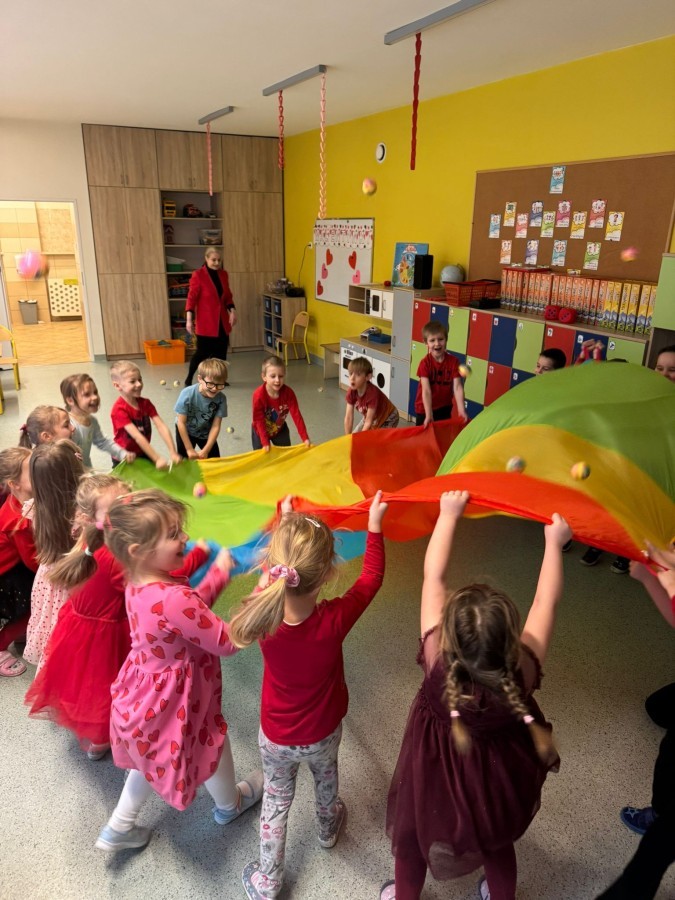 dekorowaliśmy sale, dzięki czemu całe przedszkole wypełniło się czerwienią, serduszkami i pozytywną energią.