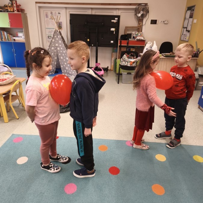 W naszym przedszkolu Walentynki były wyjątkowym dniem pełnym radości, serdeczności i kolorowych emocji. Dzieci odkrywały, że okazywanie sympatii może mieć wiele form - od uśmiechu, przez dobre słowo, aż po drobny gest, który potrafi sprawić komuś ogromną przyjemność.
