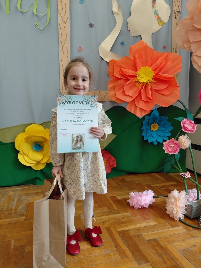🌸 Wyróżnienie dla Kamelii z grupy Foczek w konkursie „Portret Pani Wiosny" 🌸
