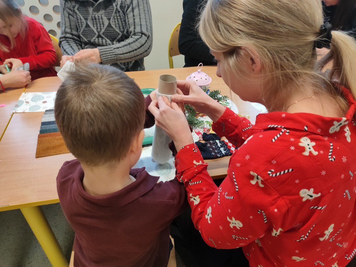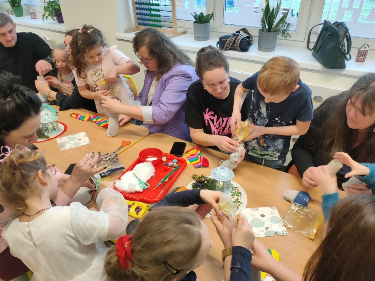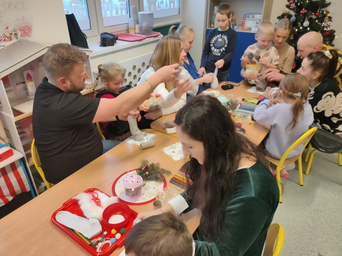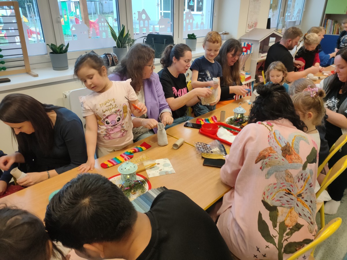 Po części pokazowej przyszedł czas na twórczą współpracę. Dzieci wspólnie z rodzicami wykonywały prace plastyczne, które stały się nie tylko piękną pamiątką, ale także okazją do rozmów, śmiechu i budowania relacji.