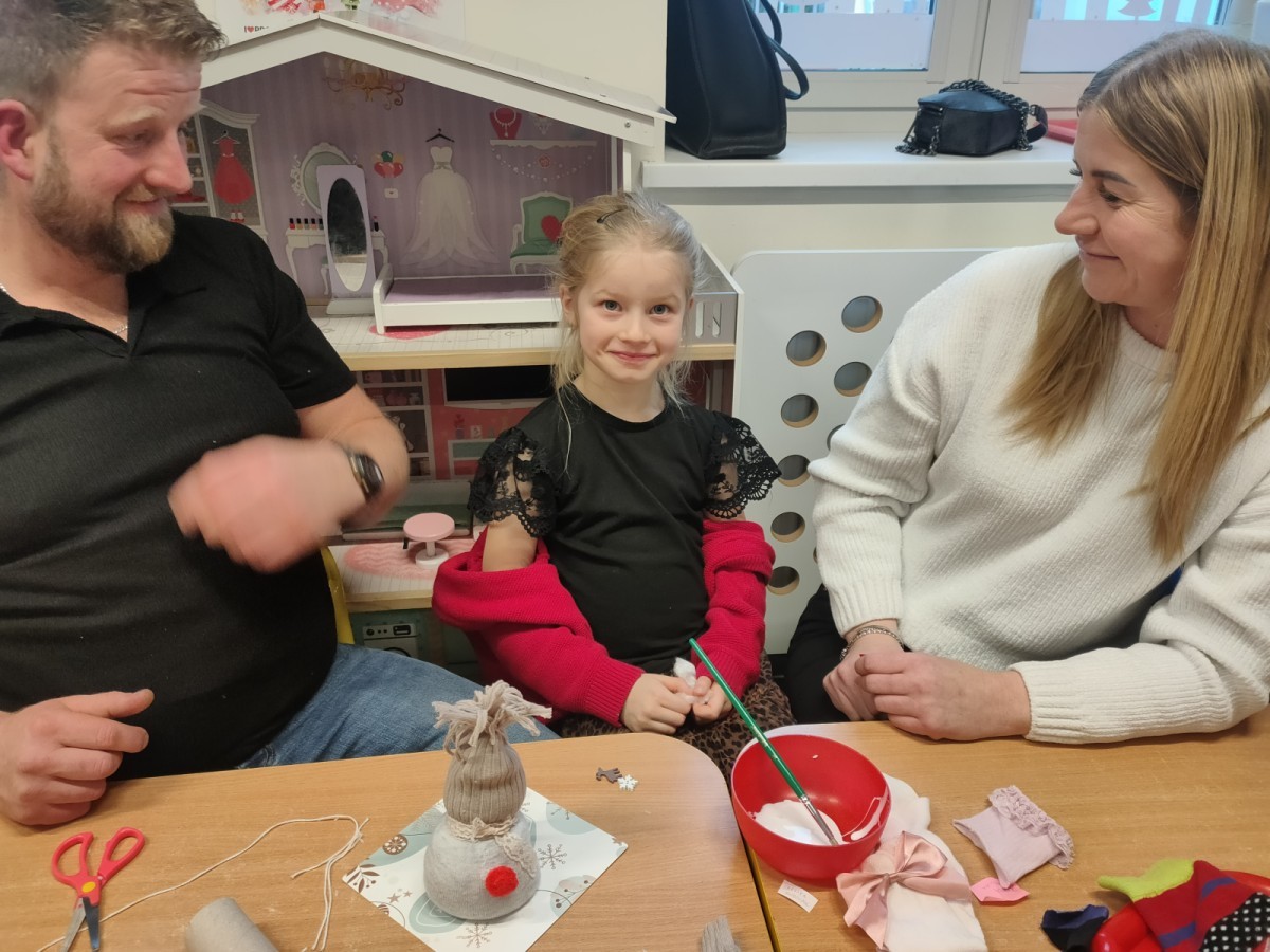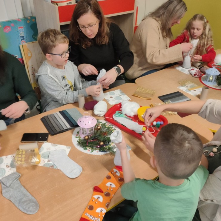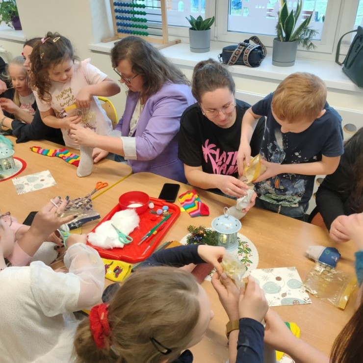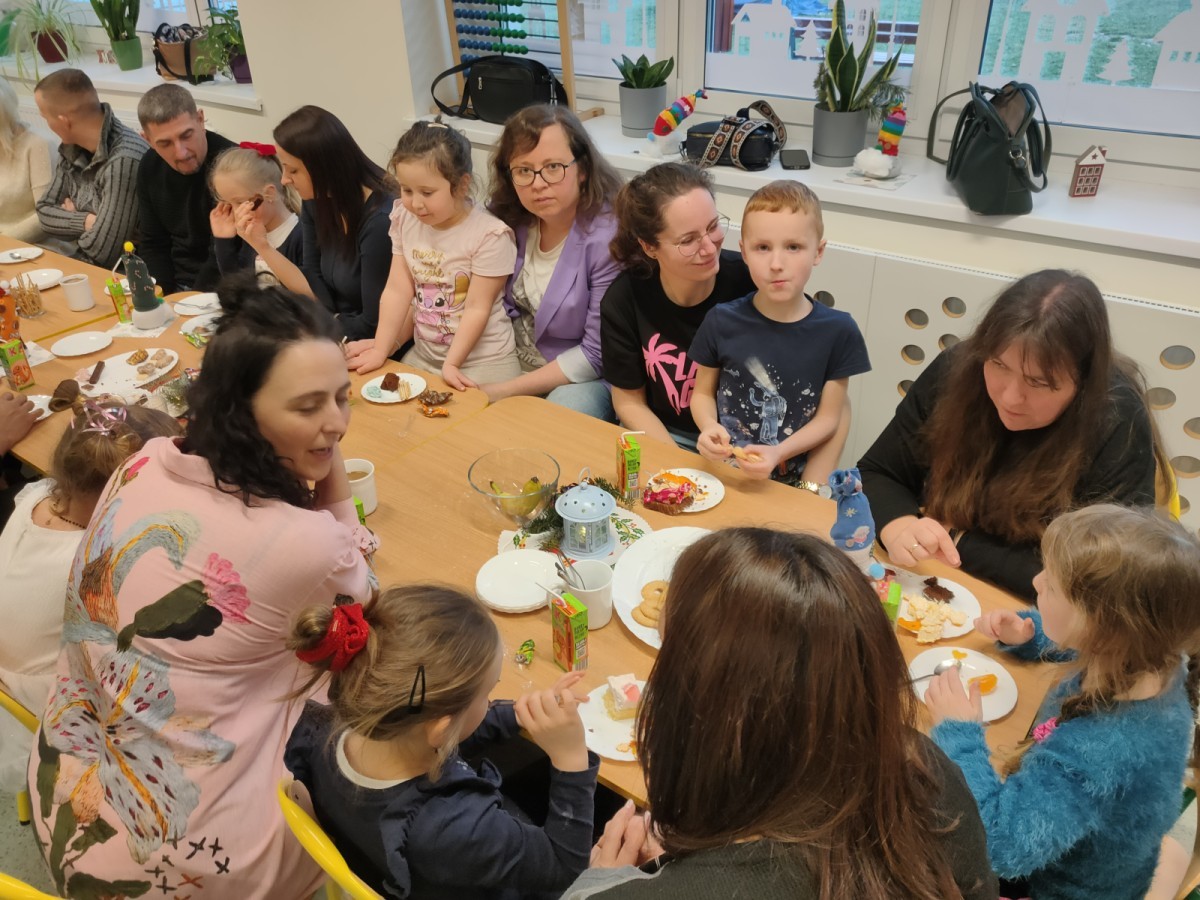 Po części pokazowej przyszedł czas na twórczą współpracę. Dzieci wspólnie z rodzicami wykonywały prace plastyczne, które stały się nie tylko piękną pamiątką, ale także okazją do rozmów, śmiechu i budowania relacji.