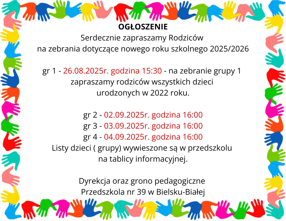 Zebrania dotyczące nowego roku szkolnego 2025/2026