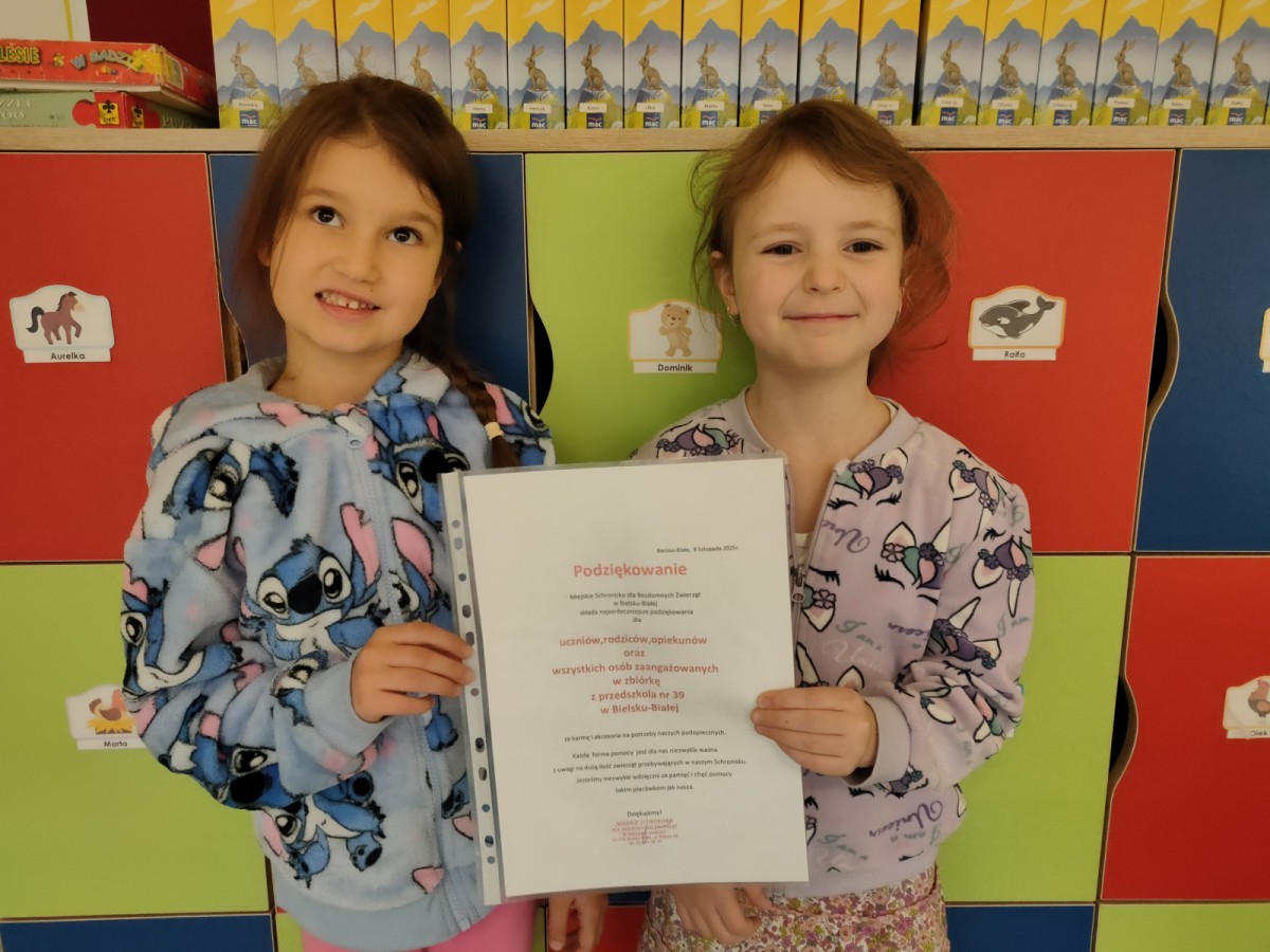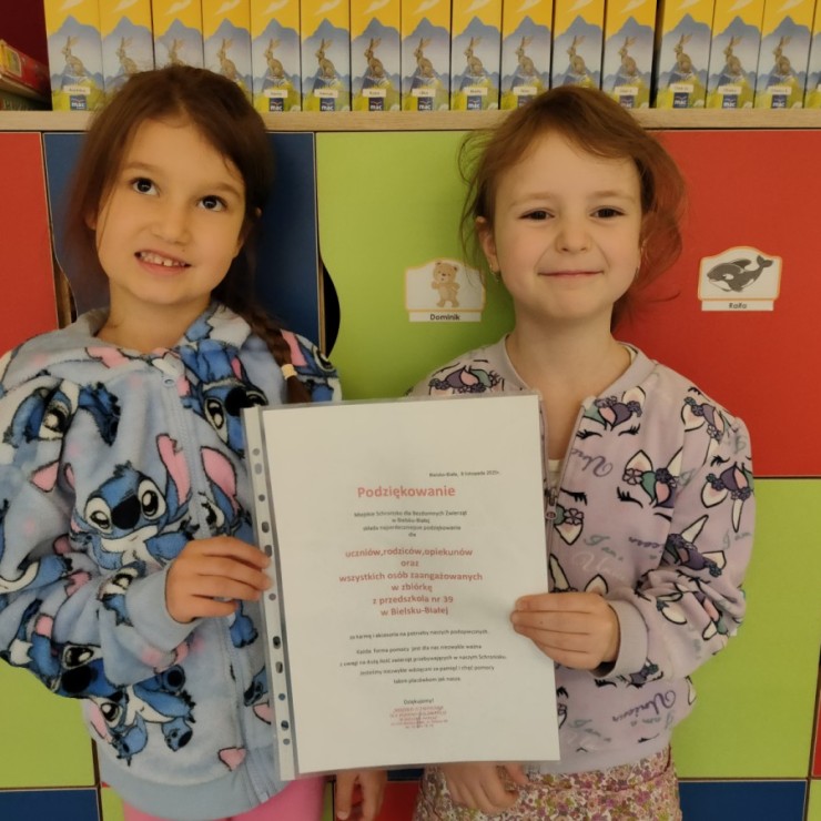 W ostatnich tygodniach dzieci z naszego przedszkola włączyły się w akcję pomocy zwierzętom ze schroniska. Najpierw dzieci z grupy Rekiny wspólnie przygotowały plakat informujący o zbiórce karmy i koców, a następnie wszyscy z zaangażowaniem przynosili potrzebne rzeczy. Wszystkie zebrane dary zostały przekazane na rzecz Miejskiego Schroniska dla Bezdomnych Zwierząt w Bielsku-Białej, które przesłało nam serdeczne podziękowania za okazane wsparcie. Dziękujemy wszystkim dzieciom i rodzicom za udział w akcji i okazane serce.
