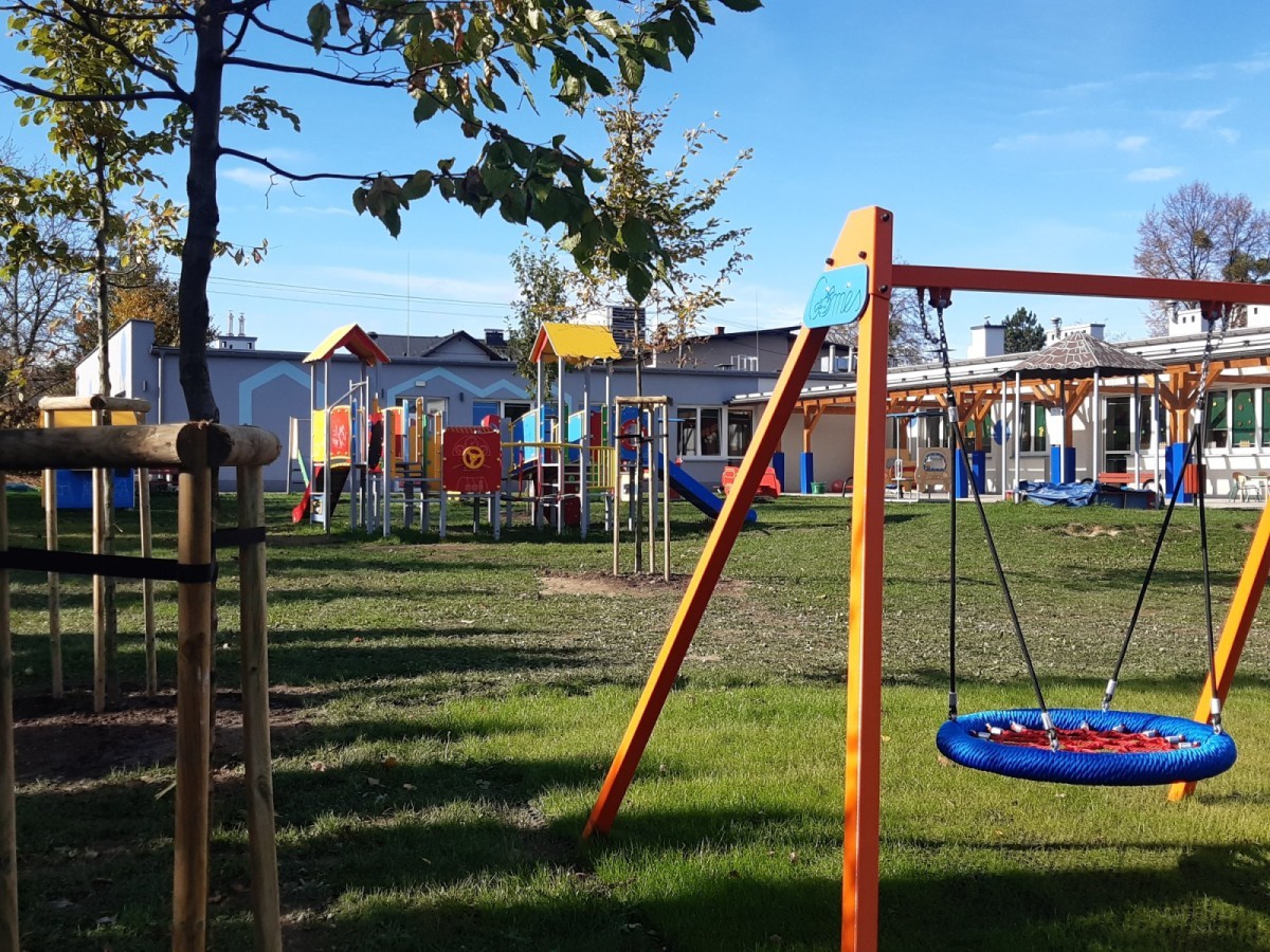 Szczególnie lubianym przez dzieci miejscem w naszym przedszkolu jest duży nowy plac zabaw wyposażony w nowoczesny sprzęt umożliwiający dzieciom kreatywną i ciekawą zabawę na świeżym powietrzu.